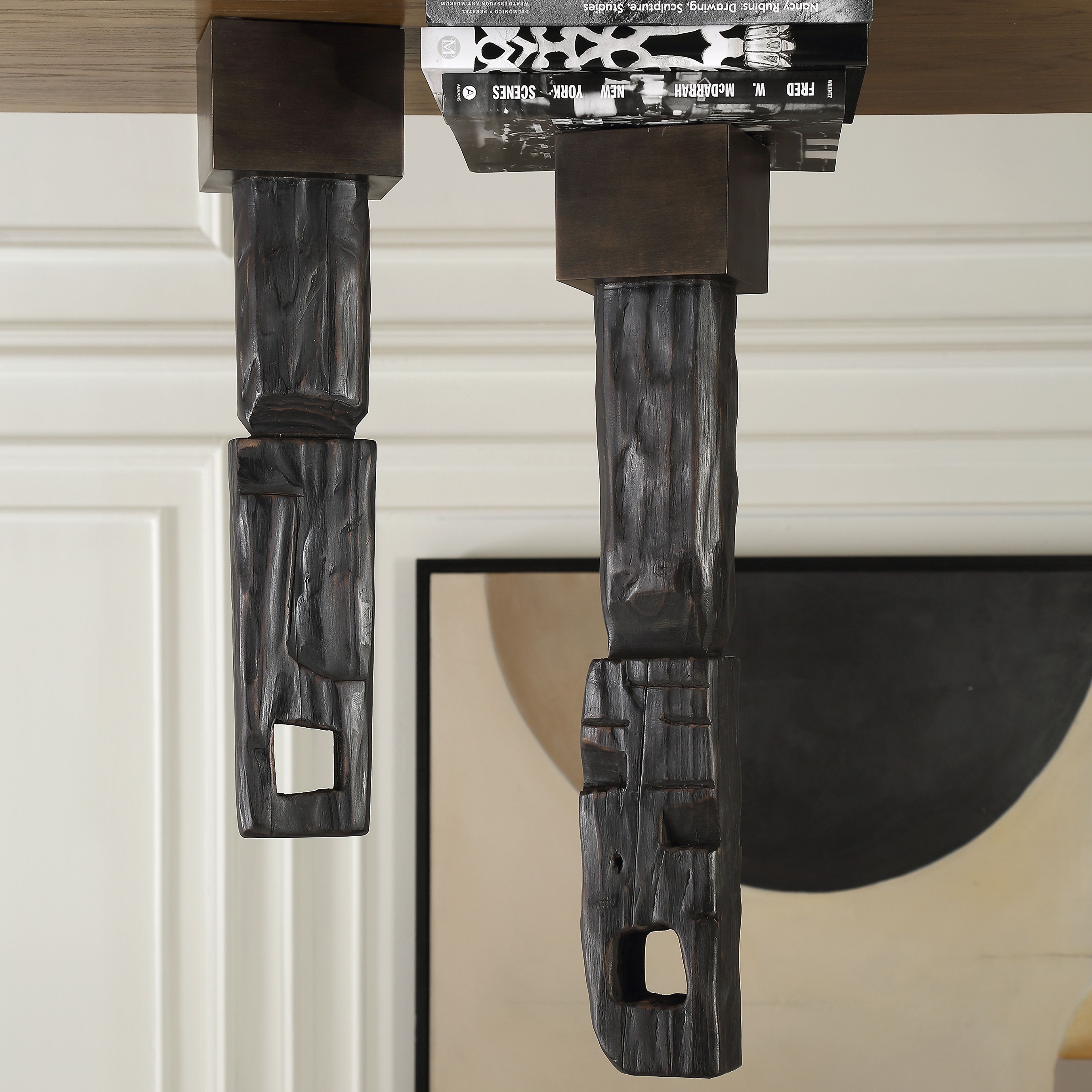 Uttermost Cipher Totems Aged Black and Brown 2-Piece Wood Sculptures