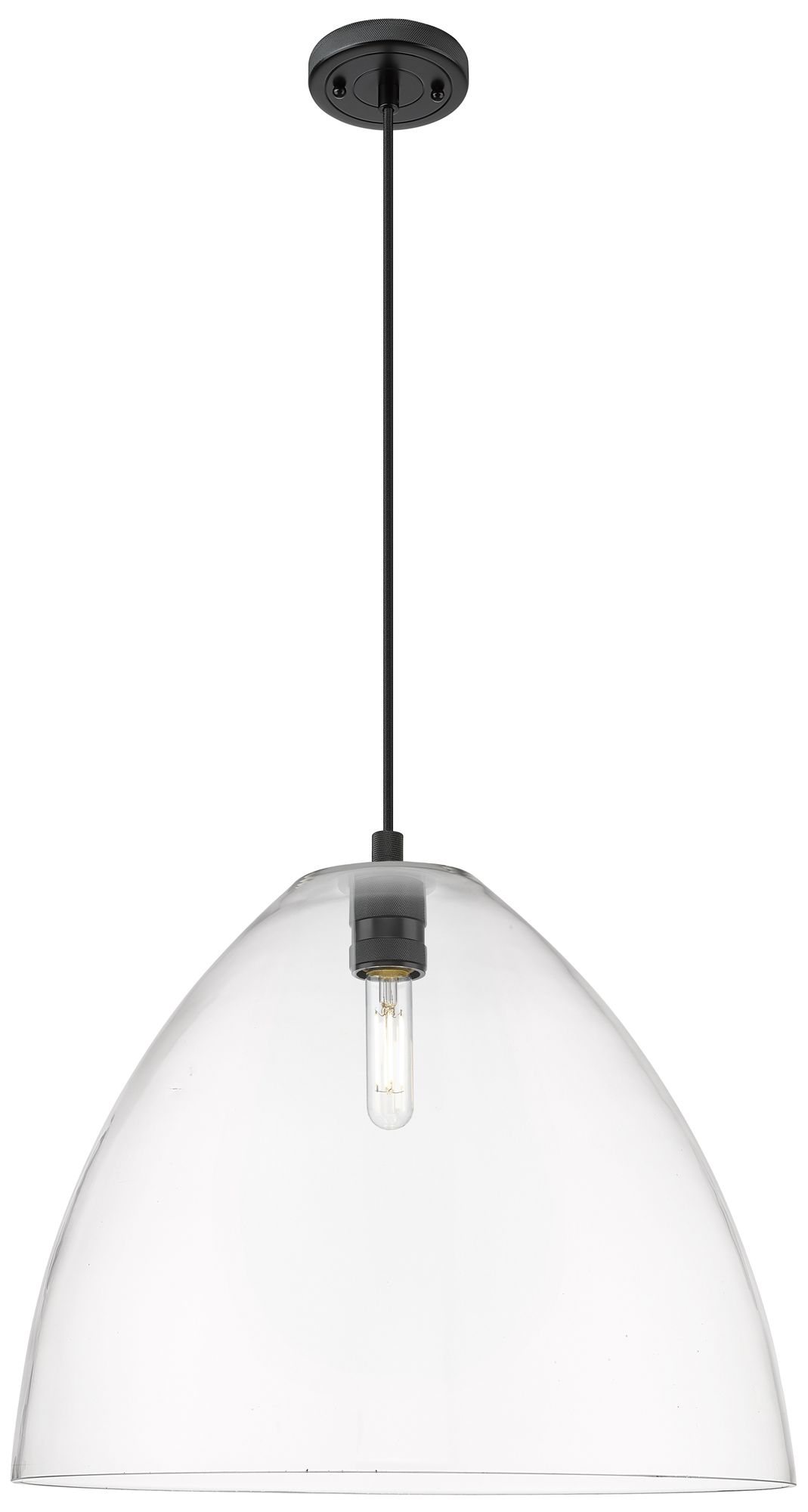 Crown Point Bristol 16"W Matte Black Cord Hung Pendant With Clear Shade
