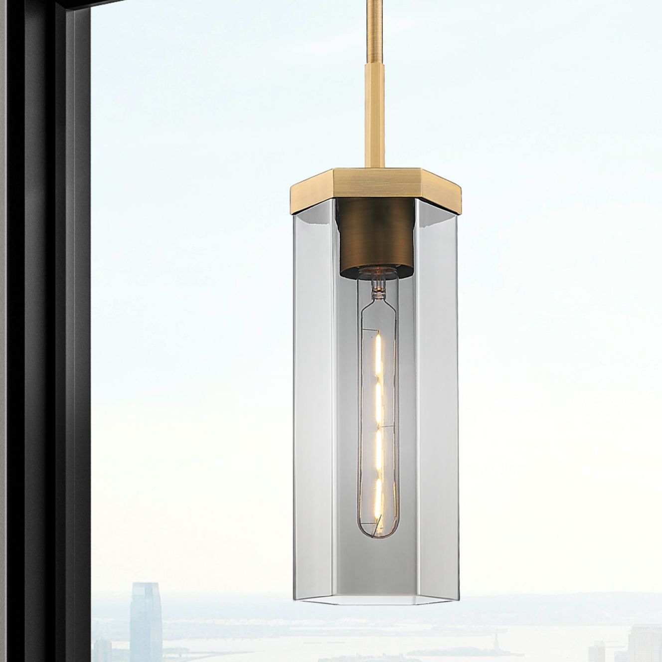 Downtown Blakeley 5"W Stem Brushed Brass Pendant w/ Light Smoke Shade