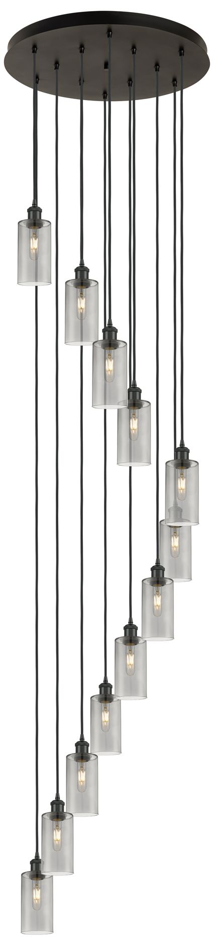 Crown Point 12 Light 24" Cord Hung Multi Pendant Matte Black w/ Smoke Shade