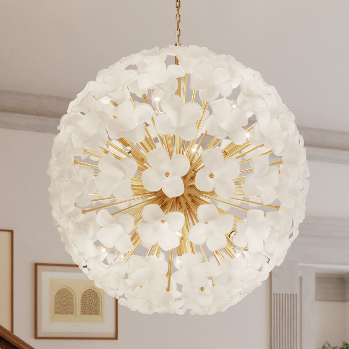 Metropolitan Bloome 12-Lt 30-in Legacy Brass Pendant with White Glass Shade