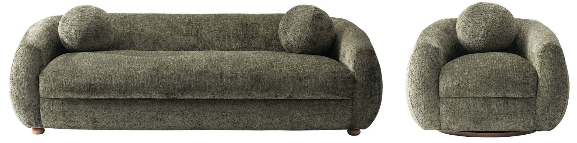2- Piece Modern Tribeca Chenille 85.8" Sofa and Accent Chair in Olive