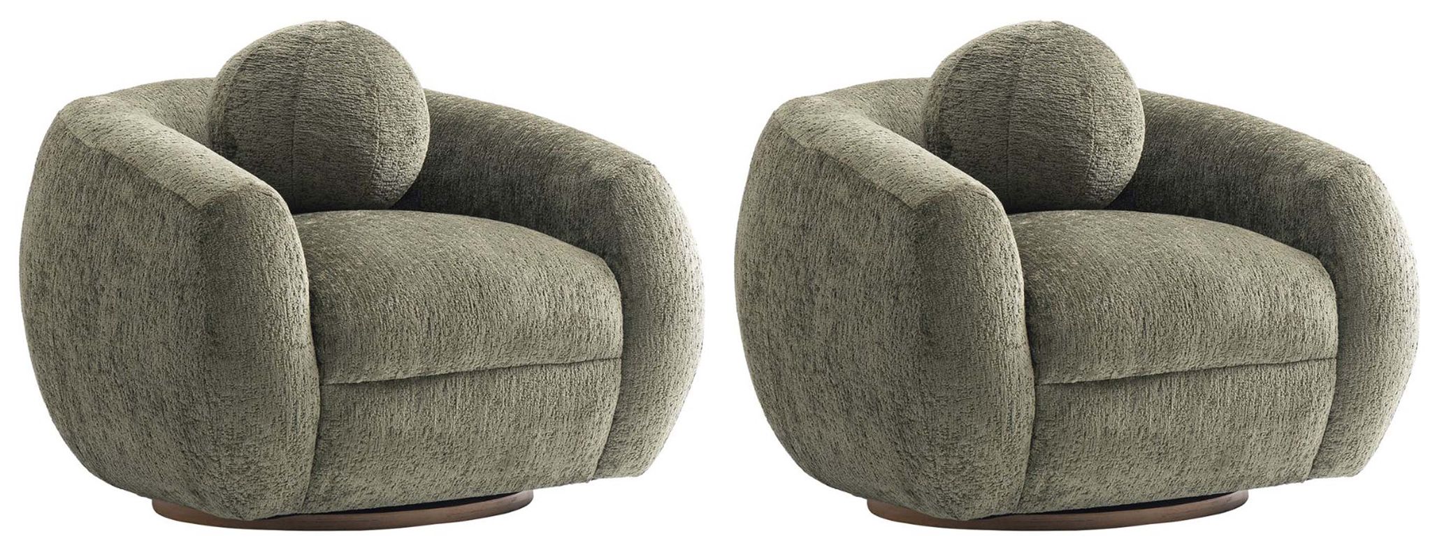 Modern Tribeca Chenille Accent Chair in Olive Green - Set of 2
