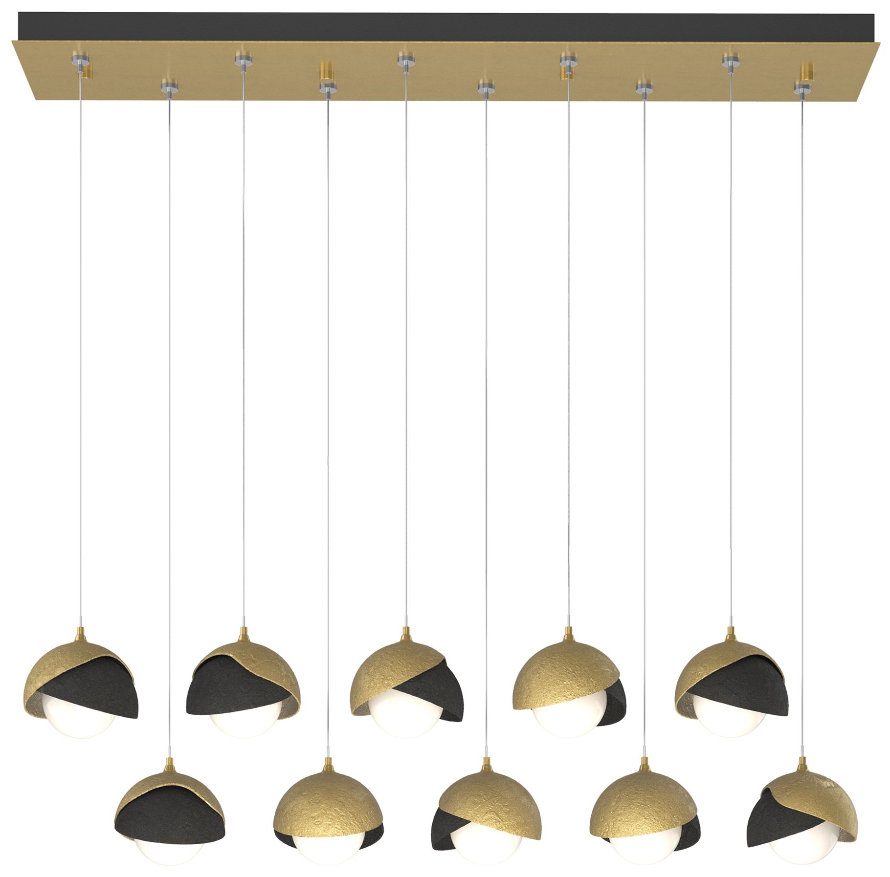 Brooklyn 10-Light Double Shade Pendant - Brass - White Accent - Opal Glass