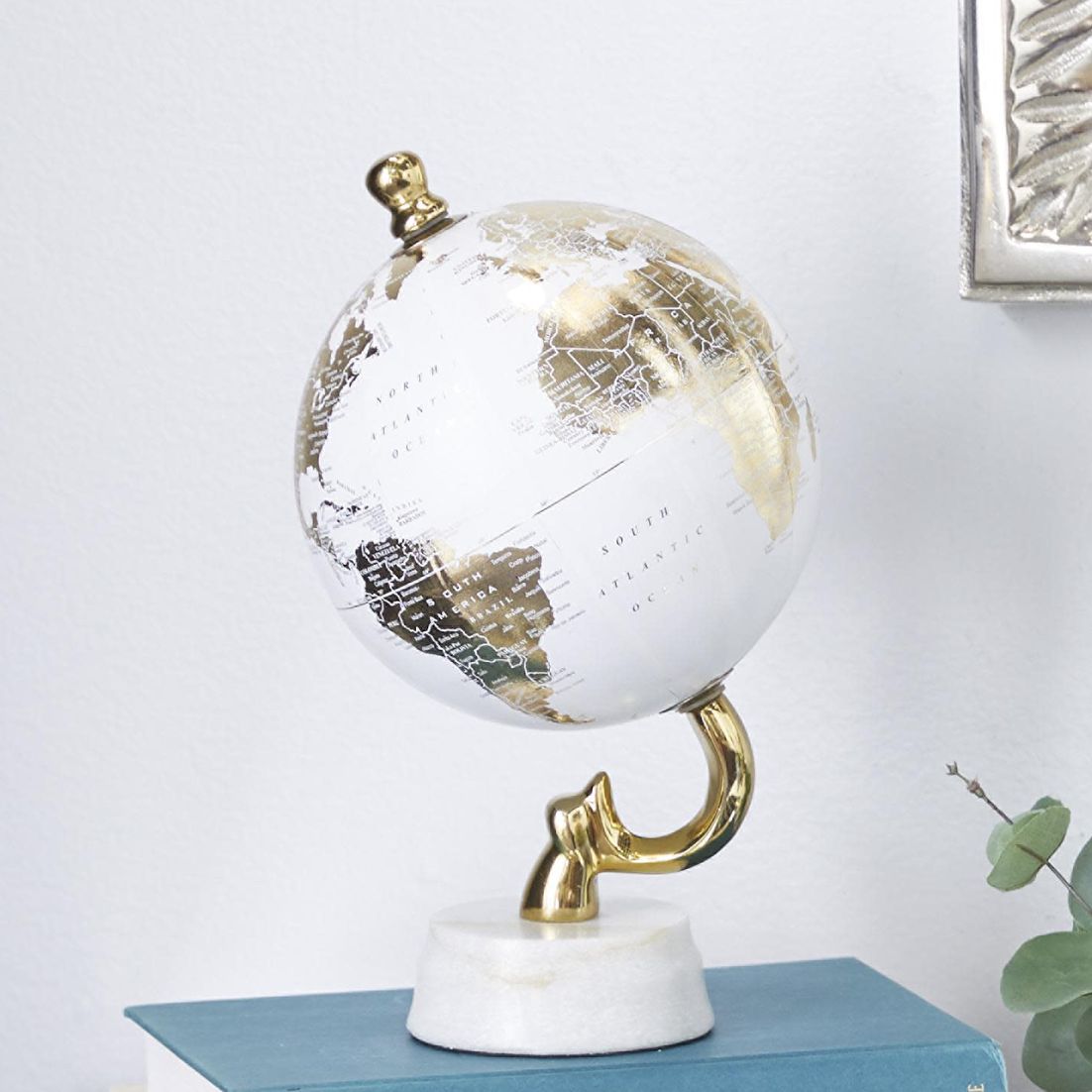 Gold Aluminum Metal Coastal Globe, 6" x 6" x 11"