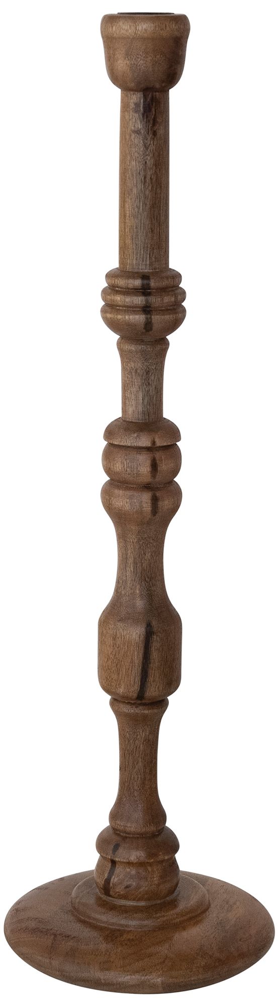 Tall Turned Mango Wood Taper Candle Holder, Walnut Finish