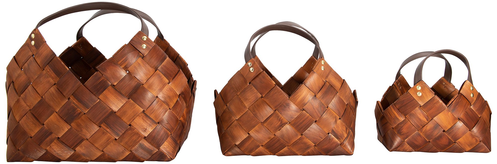 Woven Storage Basket with Leather Handles, Brown, Set of 3