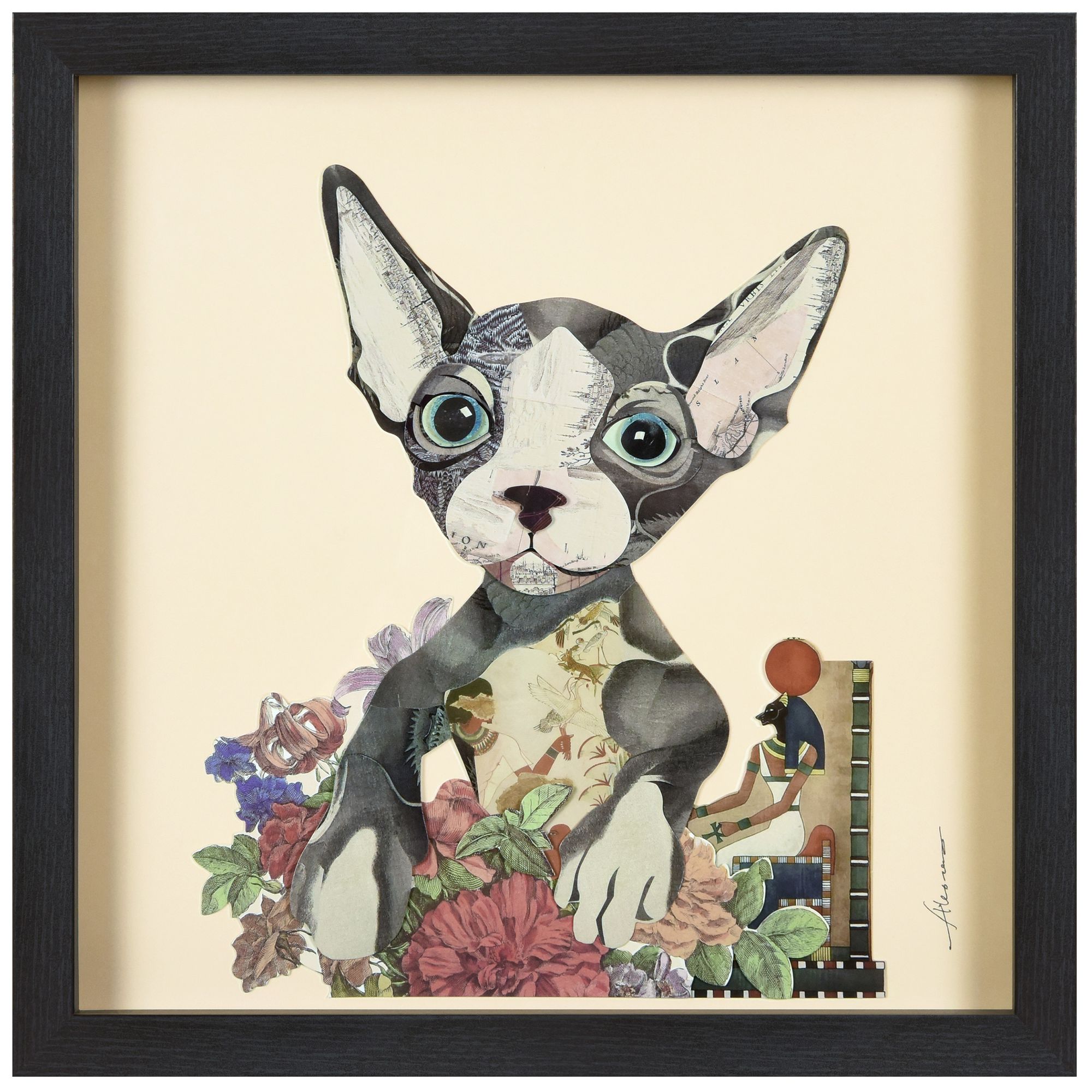 Empire Art Direct Sphynx Dimensional Collage Framed Under Glass Wall Art