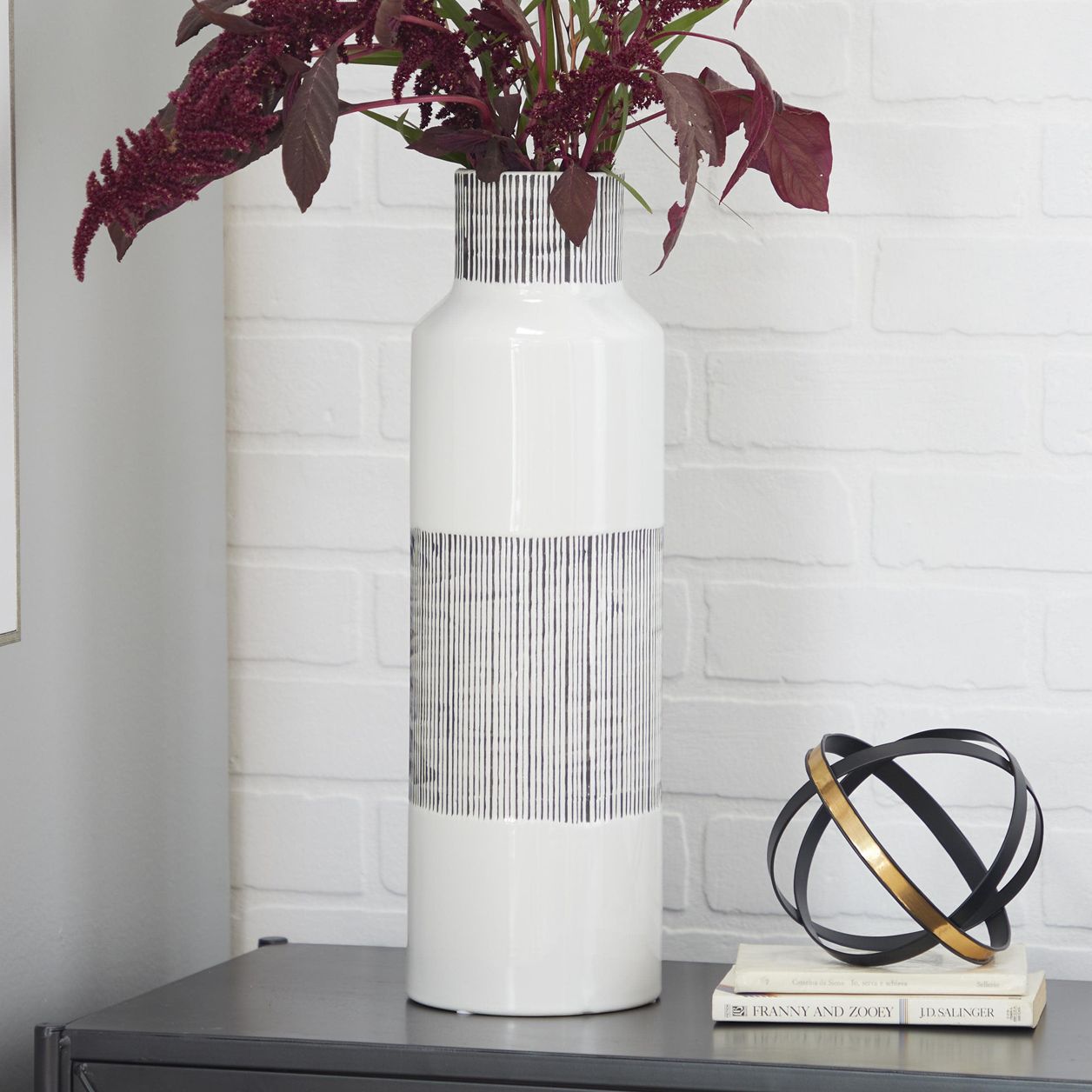 White Ceramic Modern Vase, 6" x 6" x 18"