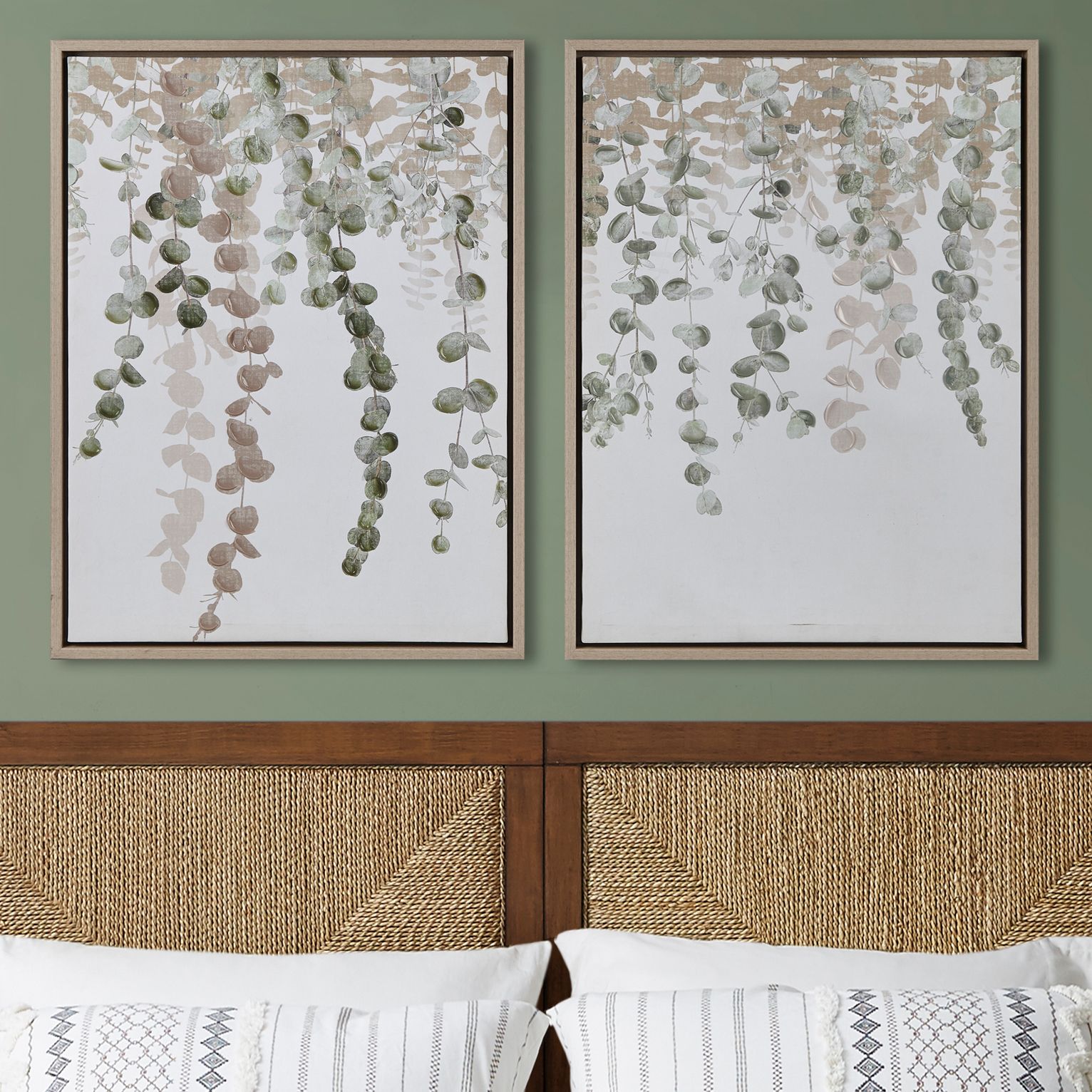 INK+IVY Green Botanical Waterfall Eucalyptus Framed Canvas Wall Decor Set