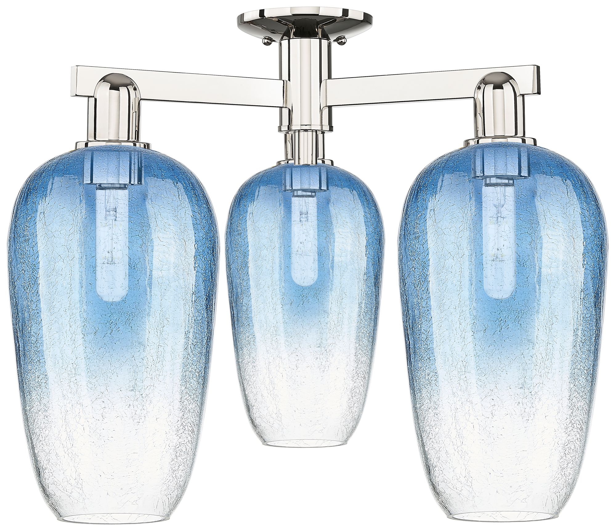 Brookhaven Flute 25"W 3 Light Nickel Semi-Flush w/ Sapphire Shade