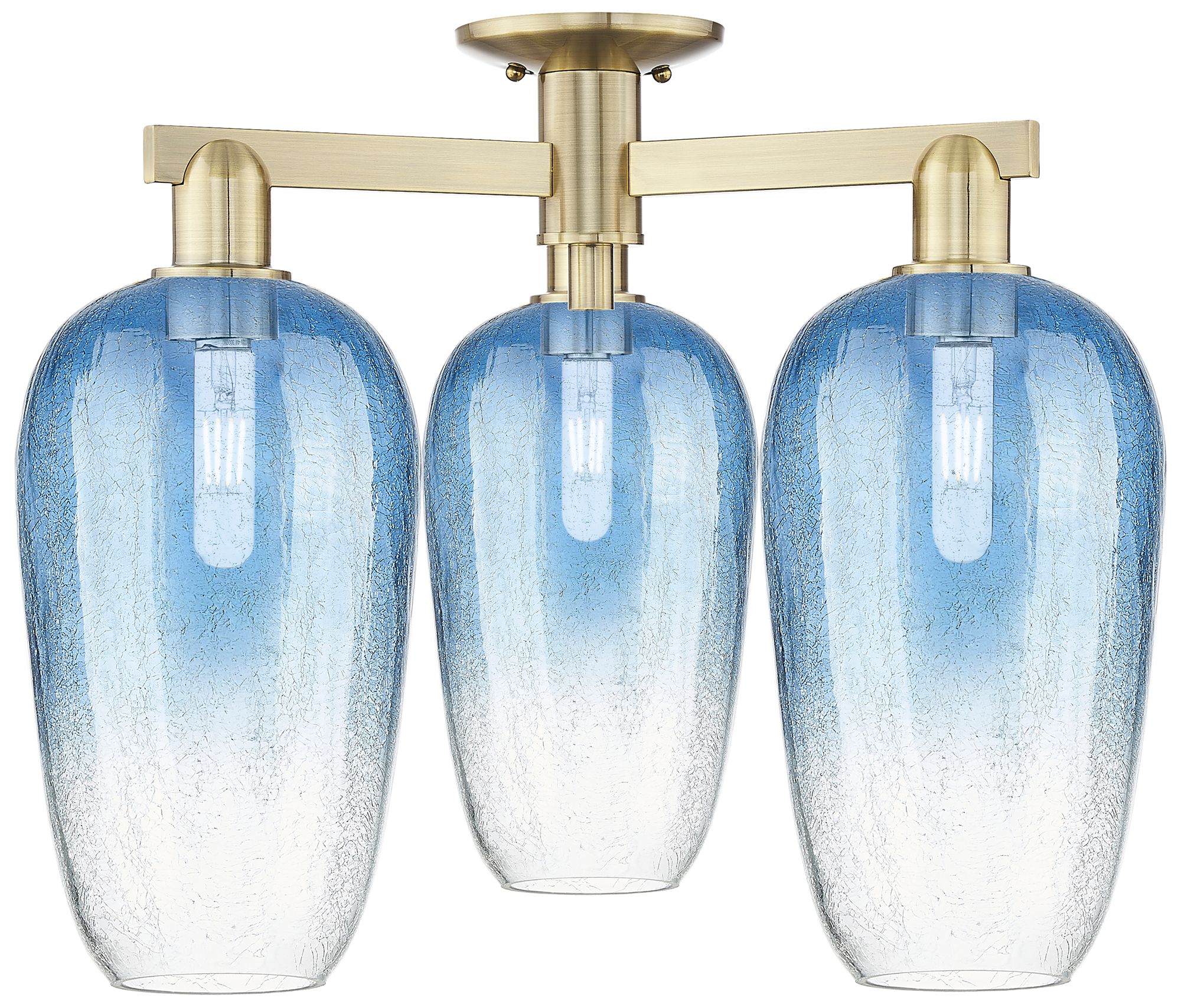 Brookhaven Flute 25"W 3-Lt Antique Brass Semi-Flush w/ Sapphire Shade