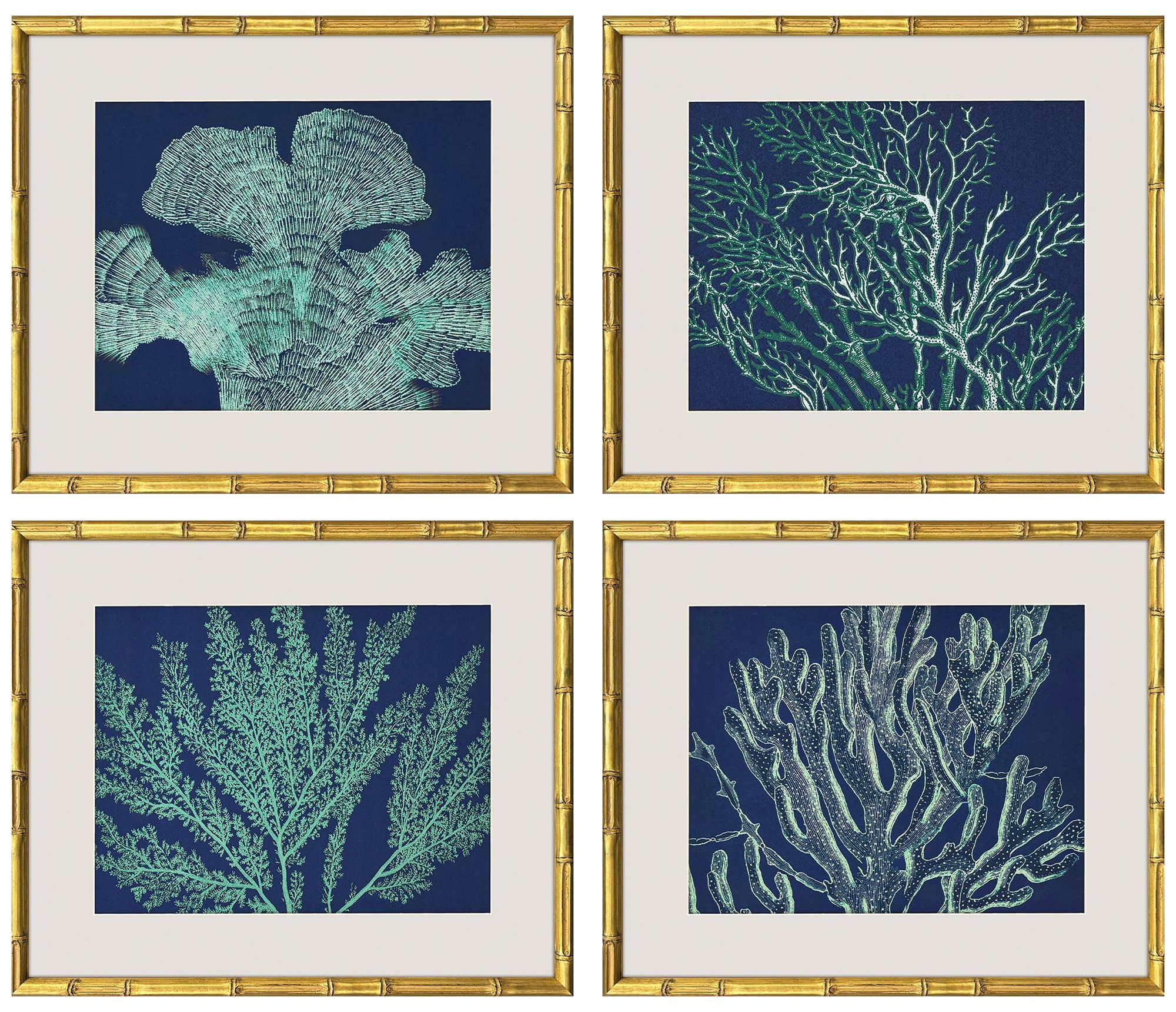Sea Garden 19"W x 16"H Coastal Framed Art Set of 4