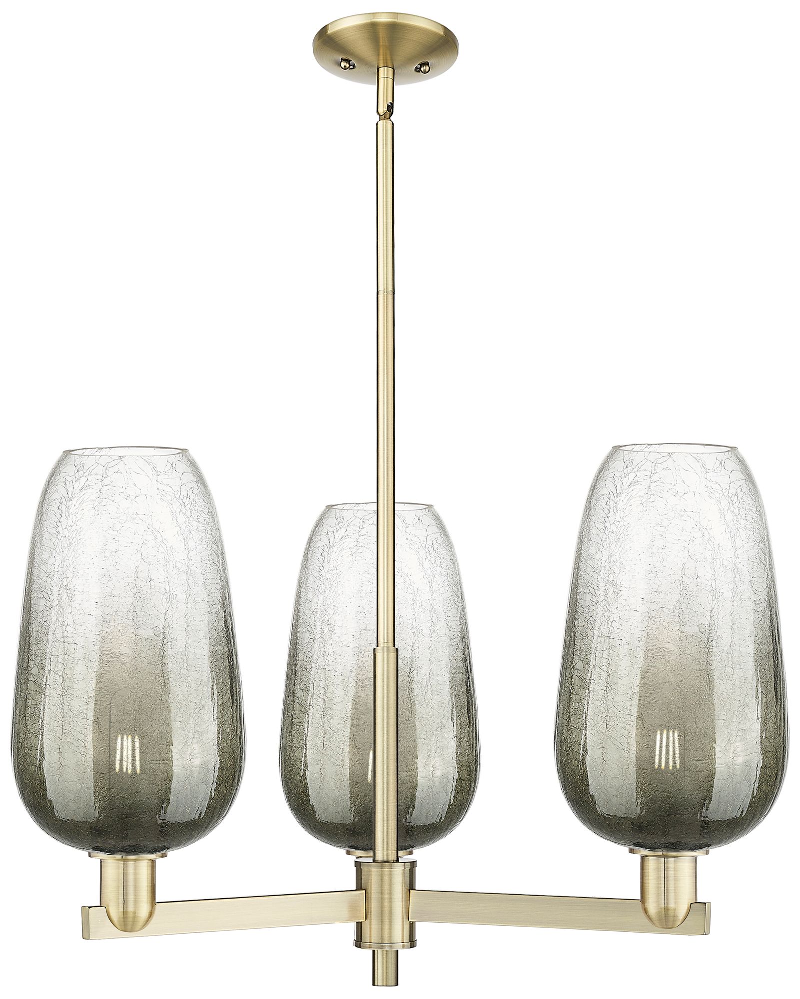 Brookhaven Flute 18"W 3-Lt Antique Brass Stem Chandelier w/ Slate Shade