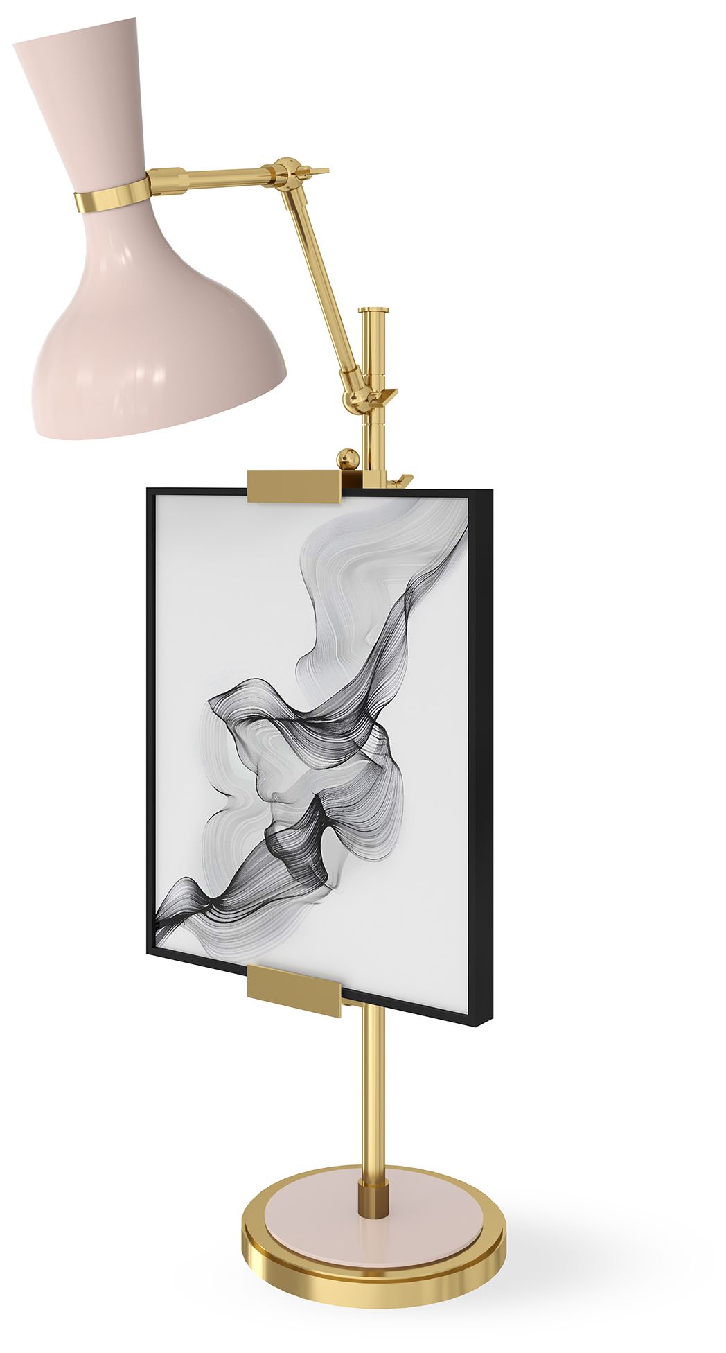 Clare 30.38" High Modern Brass Finish Easel Table Lamp w/ Rose Water Shade