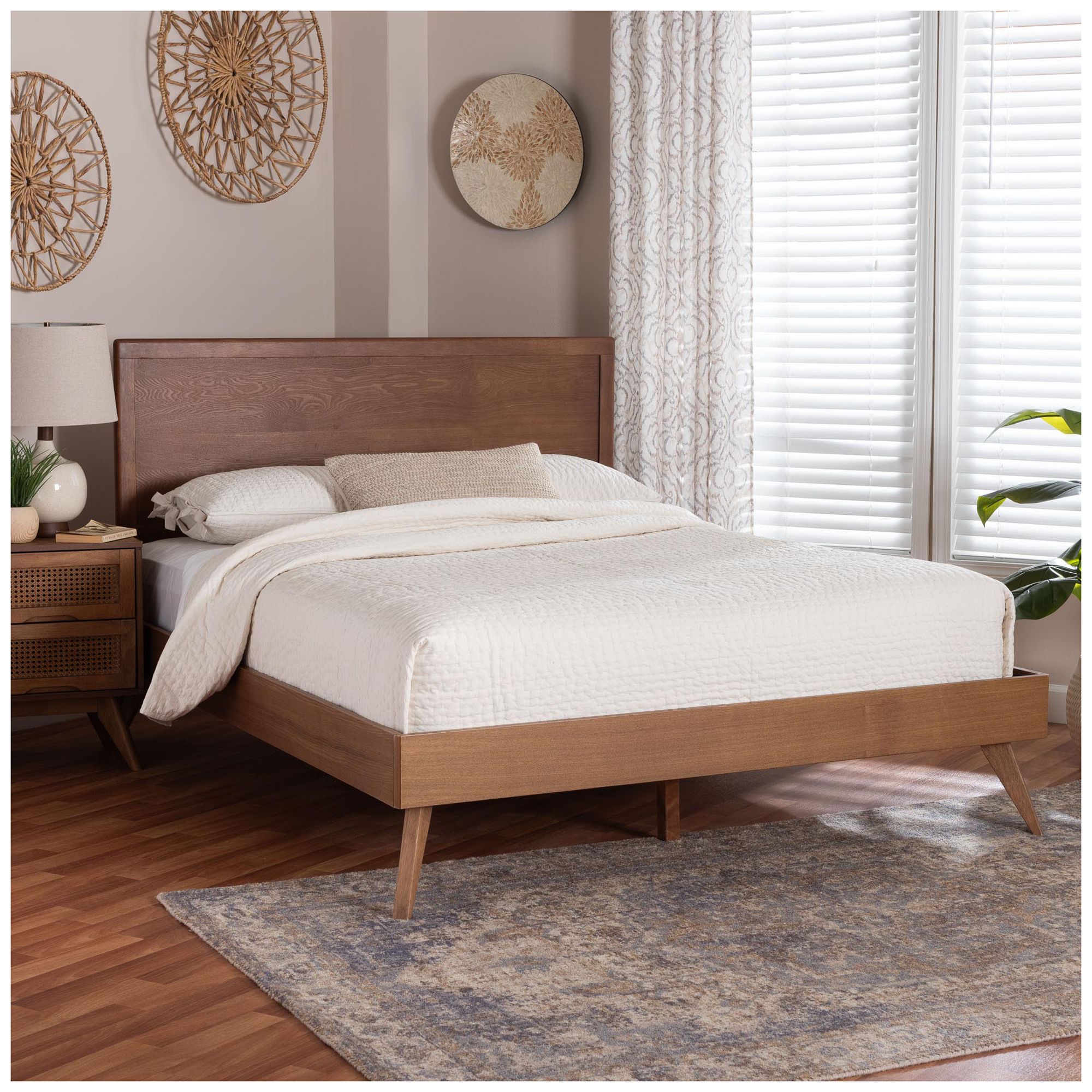 Baxton Studio Jiro Platform Bed - Wood Bed Frame with Panel Headboard, King