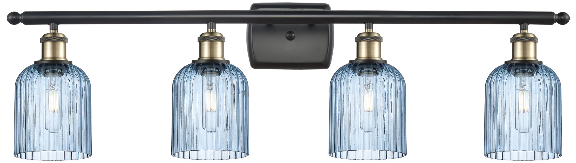 Ballston Bridal Veil 4 Light 35" Bath Vanity Black Princess Blue Shade
