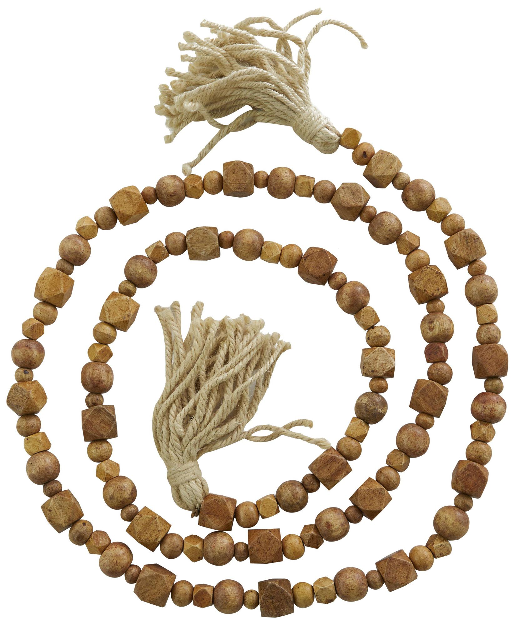 Brown Mango Wood Bohemian Garland with Tassel, 80" x 1" x 1"