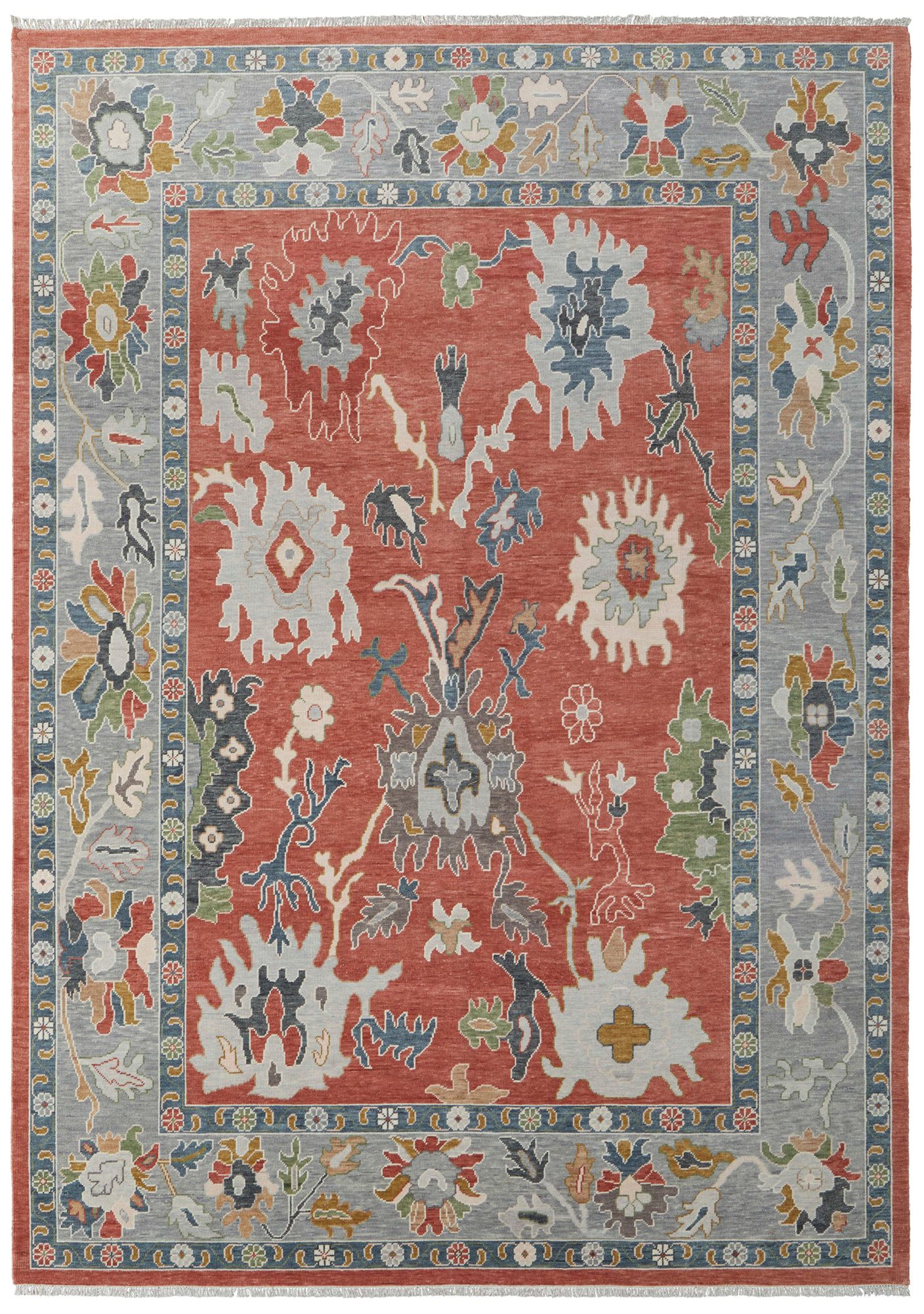 Karina Floral & Botanical Hand Knotted Red Area Rug 7'-9" x 9'-9"