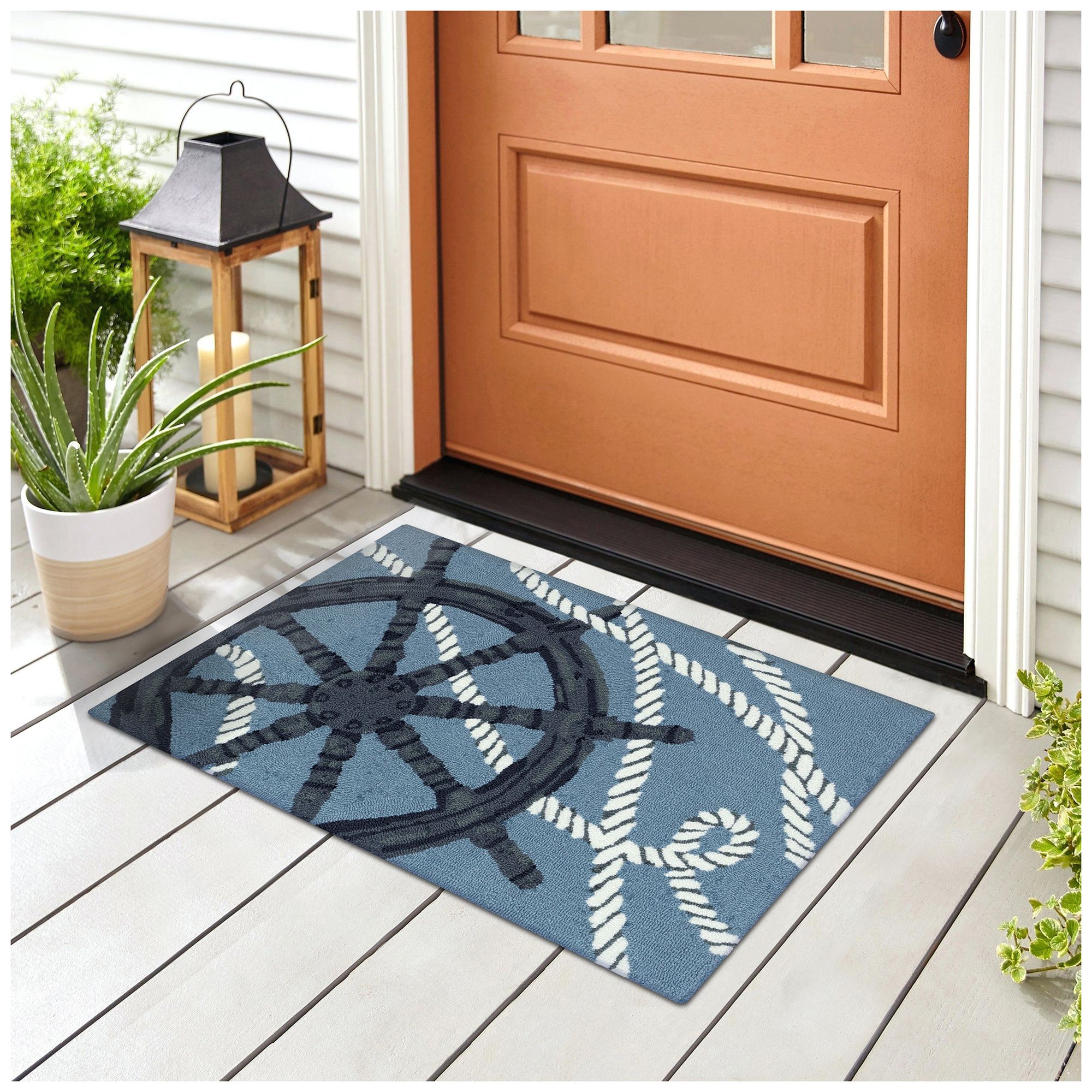 Liora Manne Frontporch Captain's Wheel Indoor/Outdoor Mat Marine 1'8"x2'6"