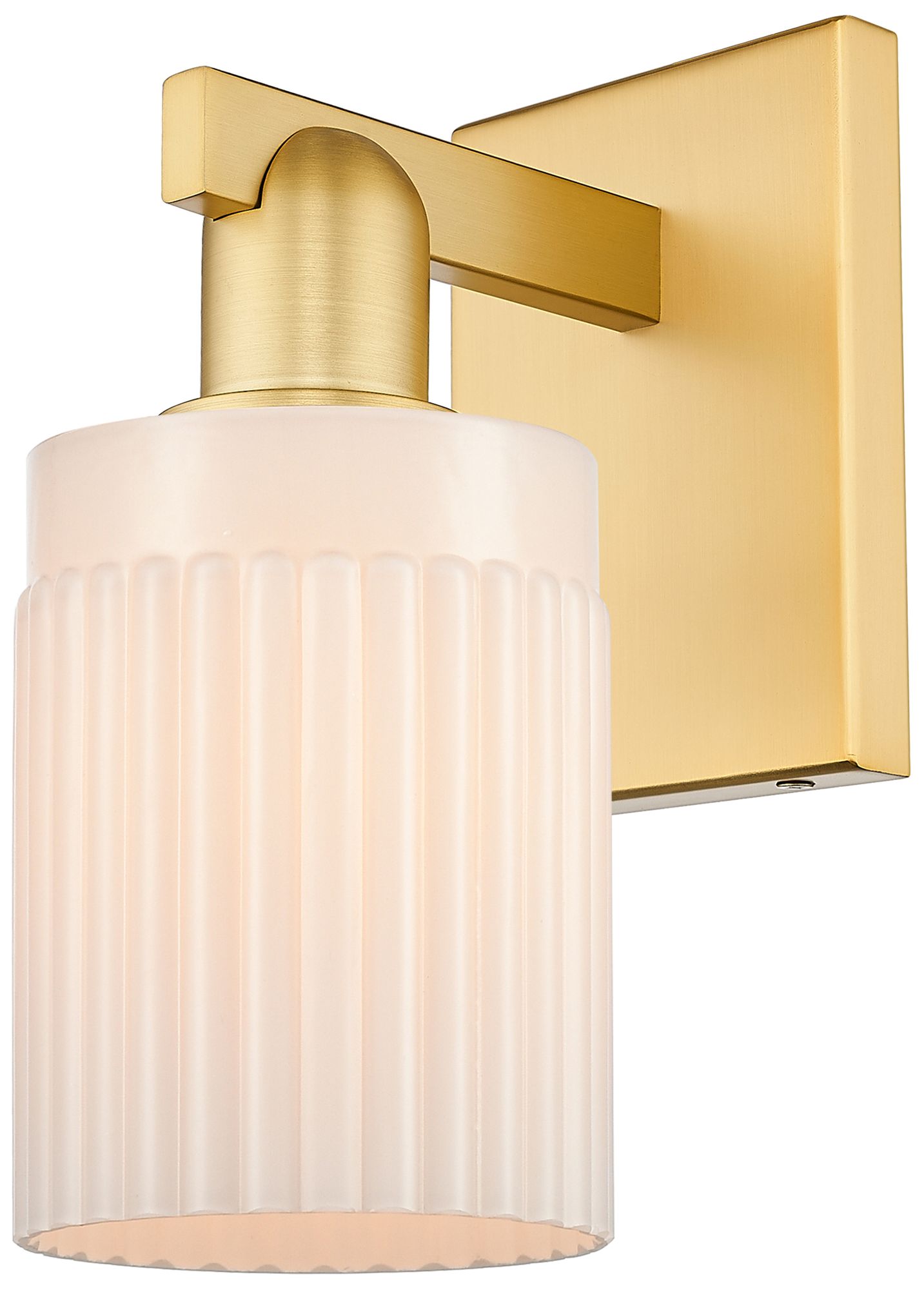 Arcadia Hadley 11" High Satin Gold Sconce With Matte White Shade