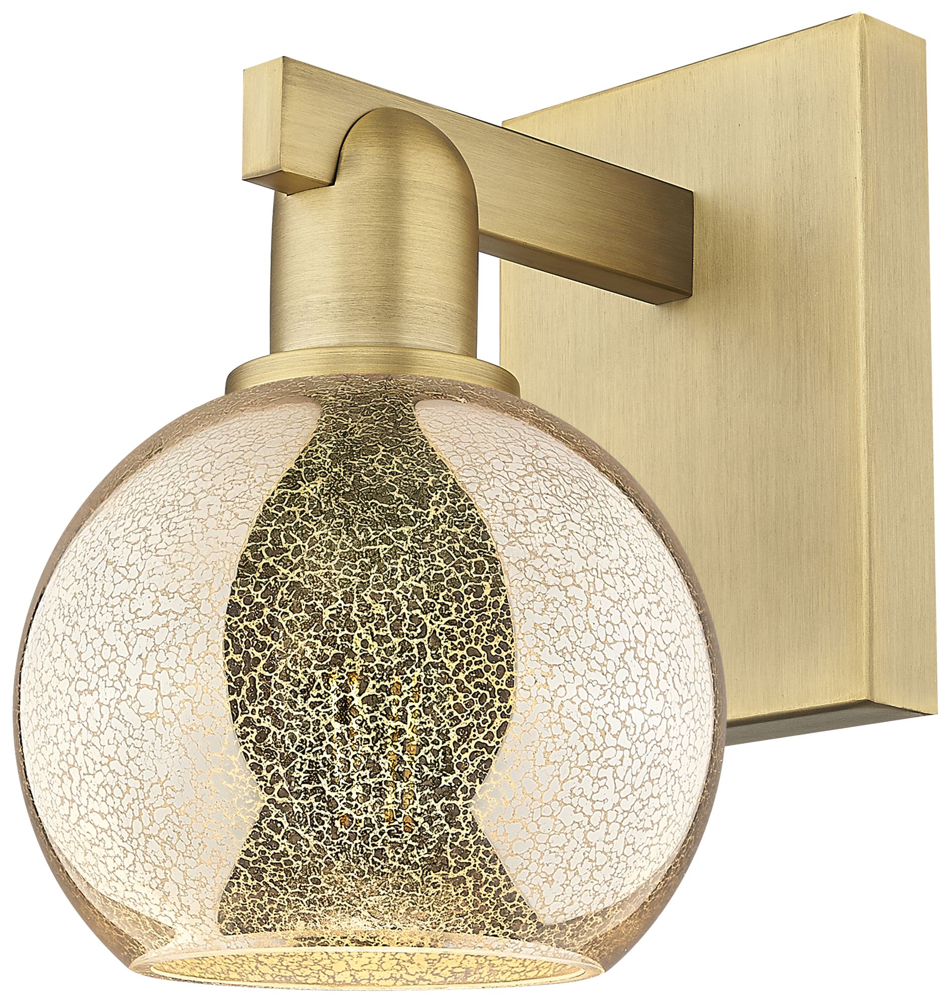 Arcadia Athens 10" High Brushed Brass Sconce With Mercury Shade