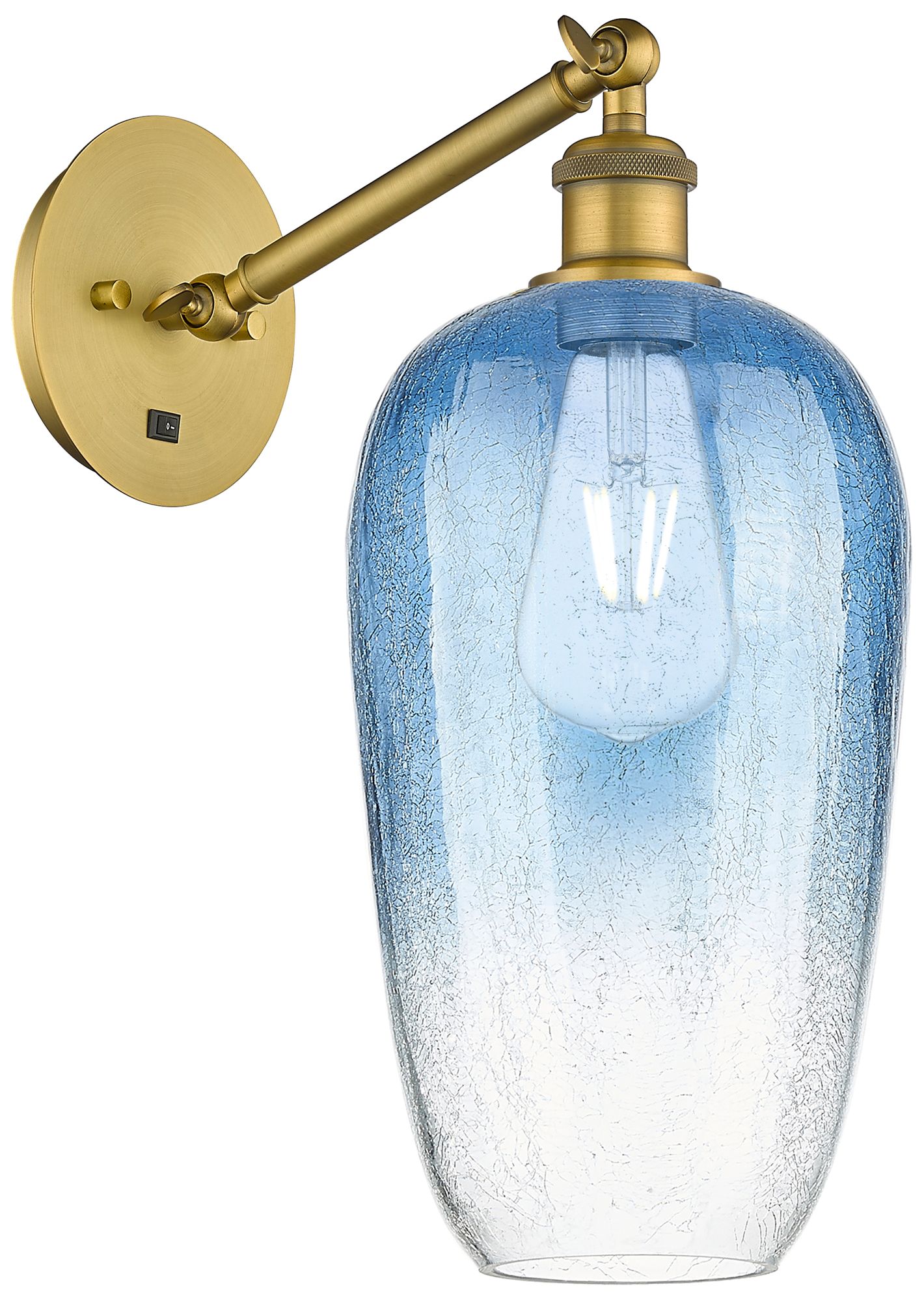 Ballston Brookhaven Flute 15"H Brush Brass Swivel Sconce w/ Sapphire Shade