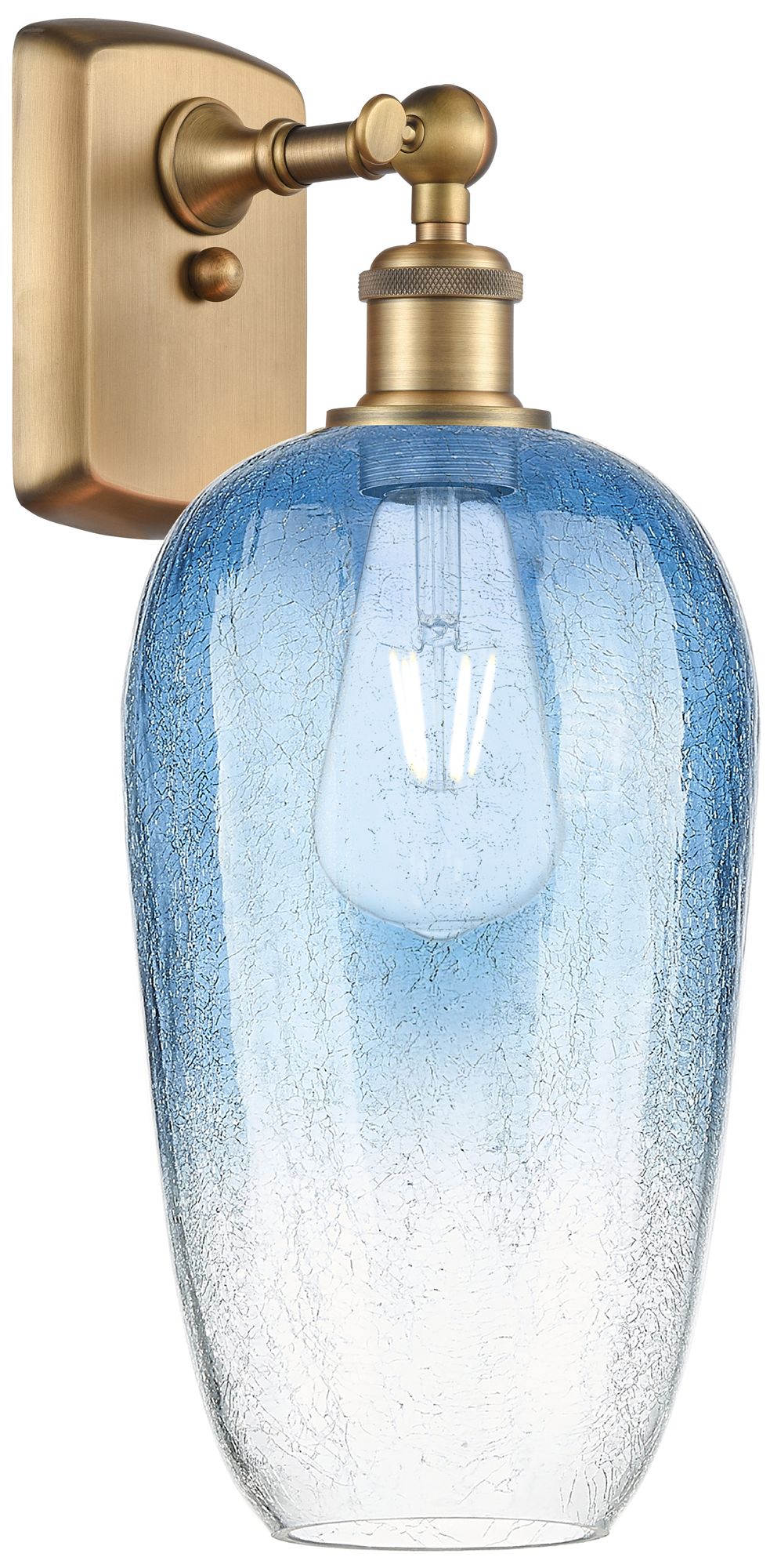 Ballston Brookhaven Flute 16"H Brushed Brass Sconce w/ Sapphire Shade