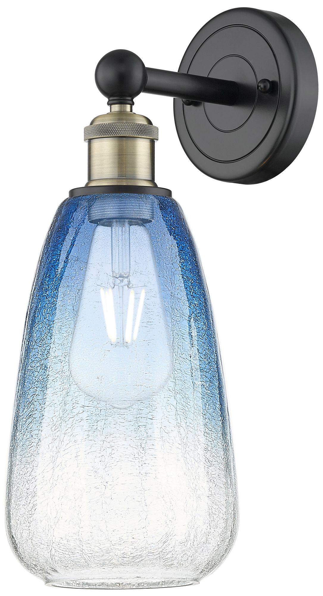 Edison Brookhaven Almond 15"H Black And Brass Sconce w/ Sapphire Shade
