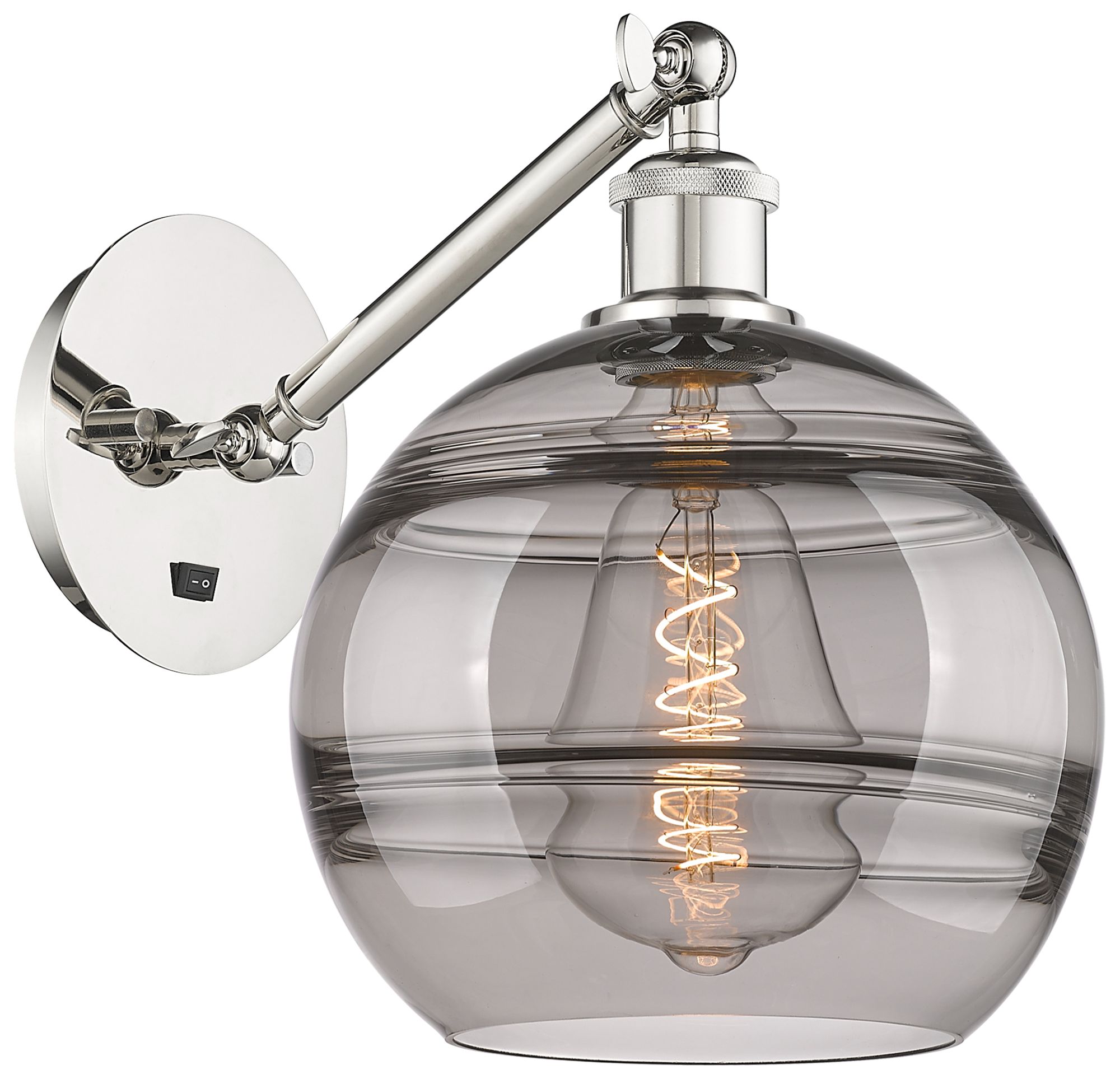 Rochester 12" High Polished Nickel Adjustable Sconce w/ Light Smoke Shade