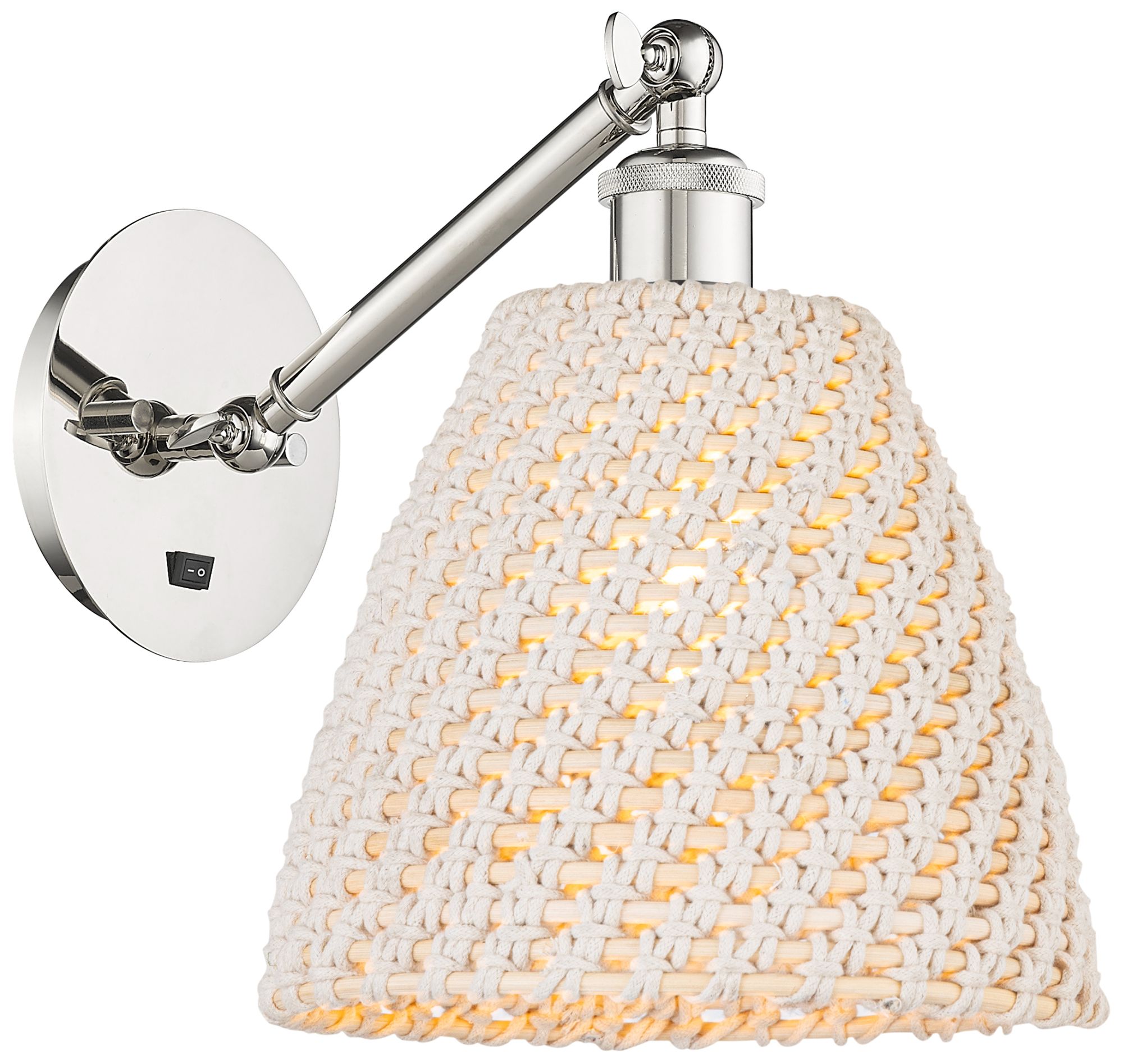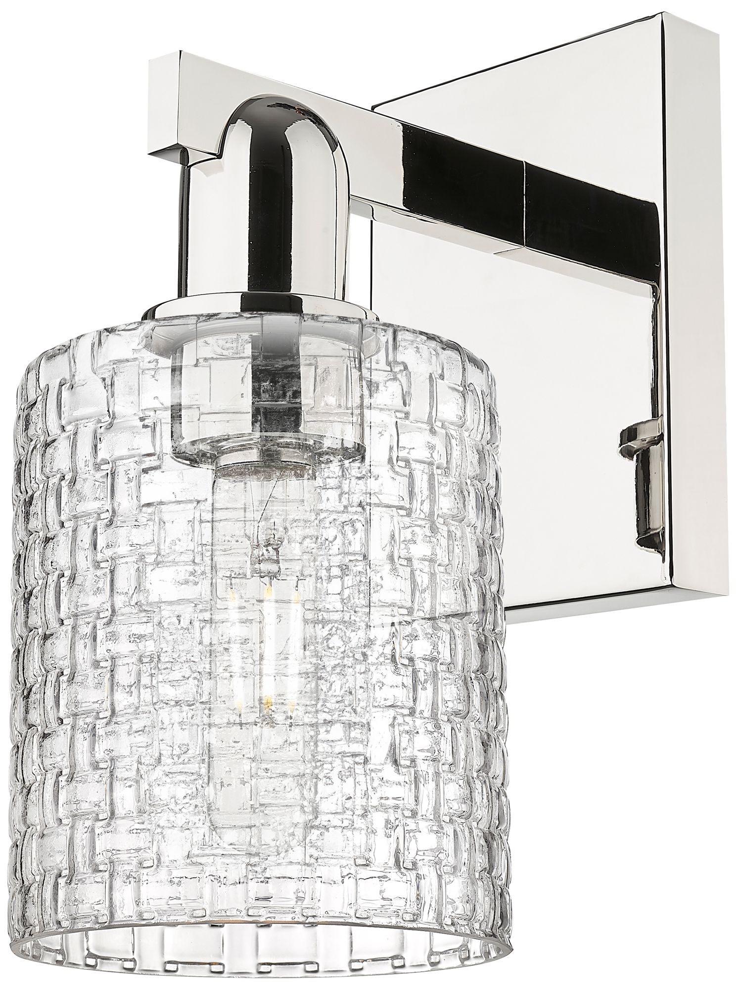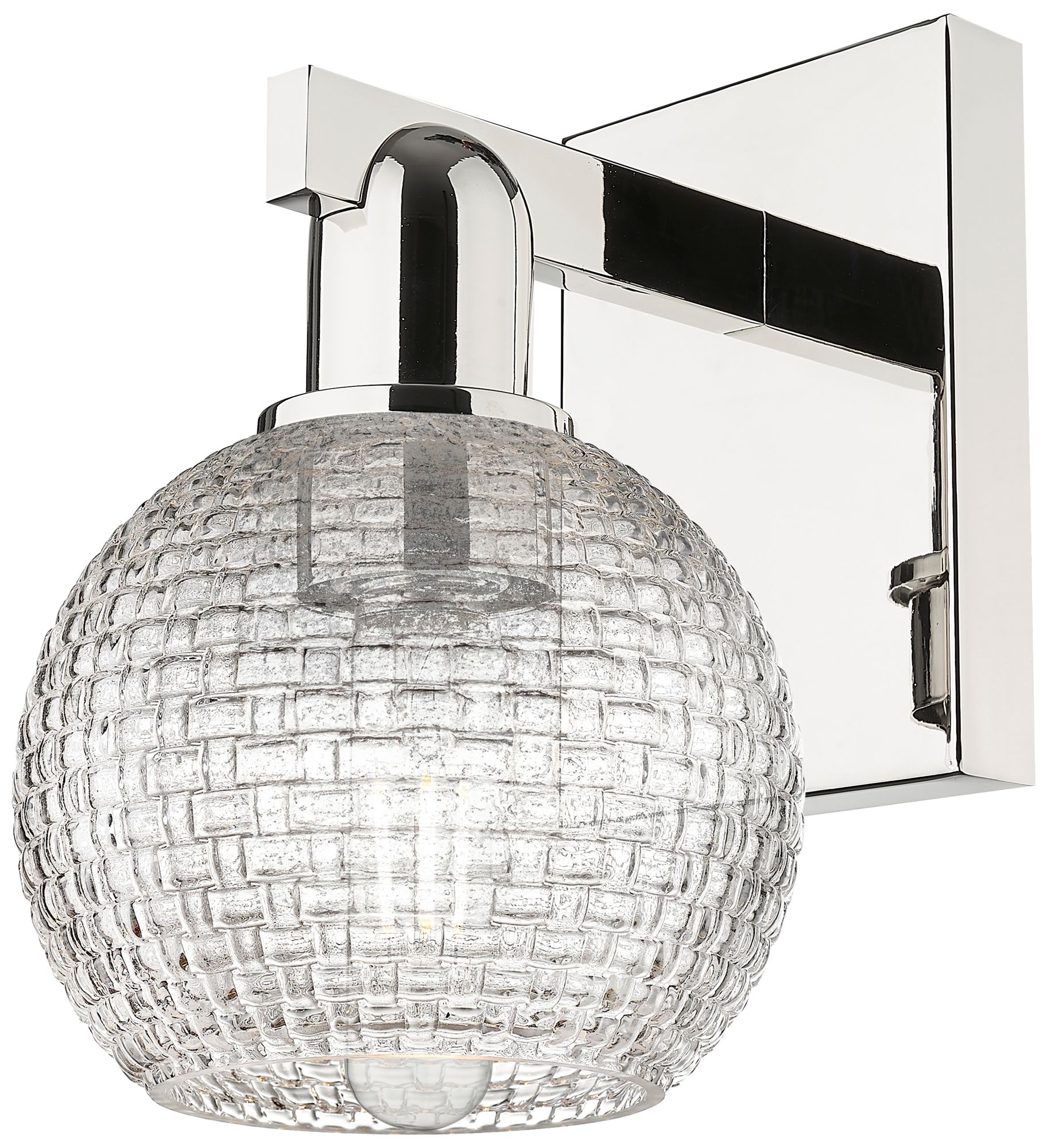 Arcadia Cobbleskill 11"H Polished Nickel Sconce w/ Basketweave Shade