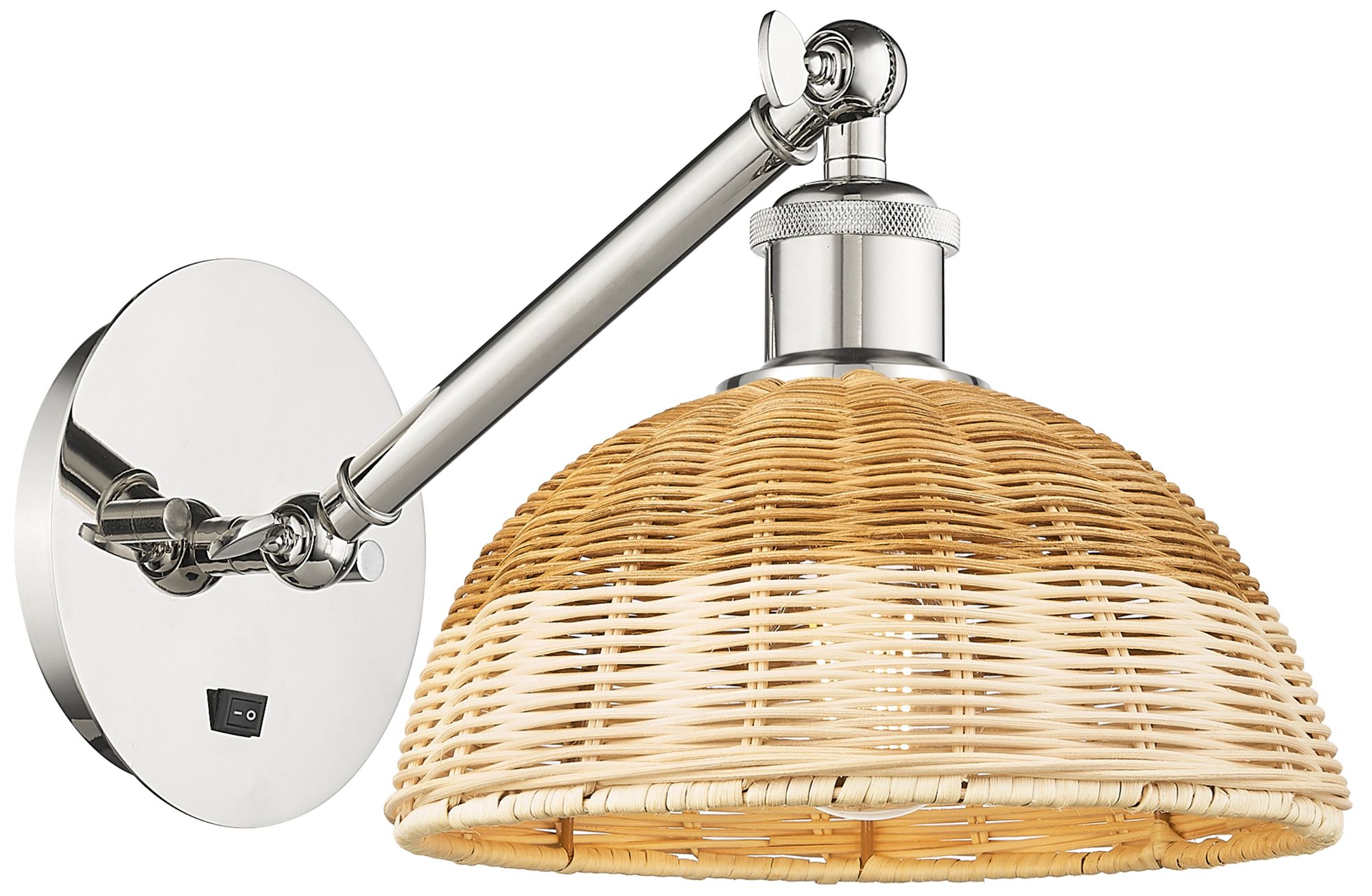 Bristol Natural 11" High Polished Nickel Adjustable Sconce w/ Natural Shade
