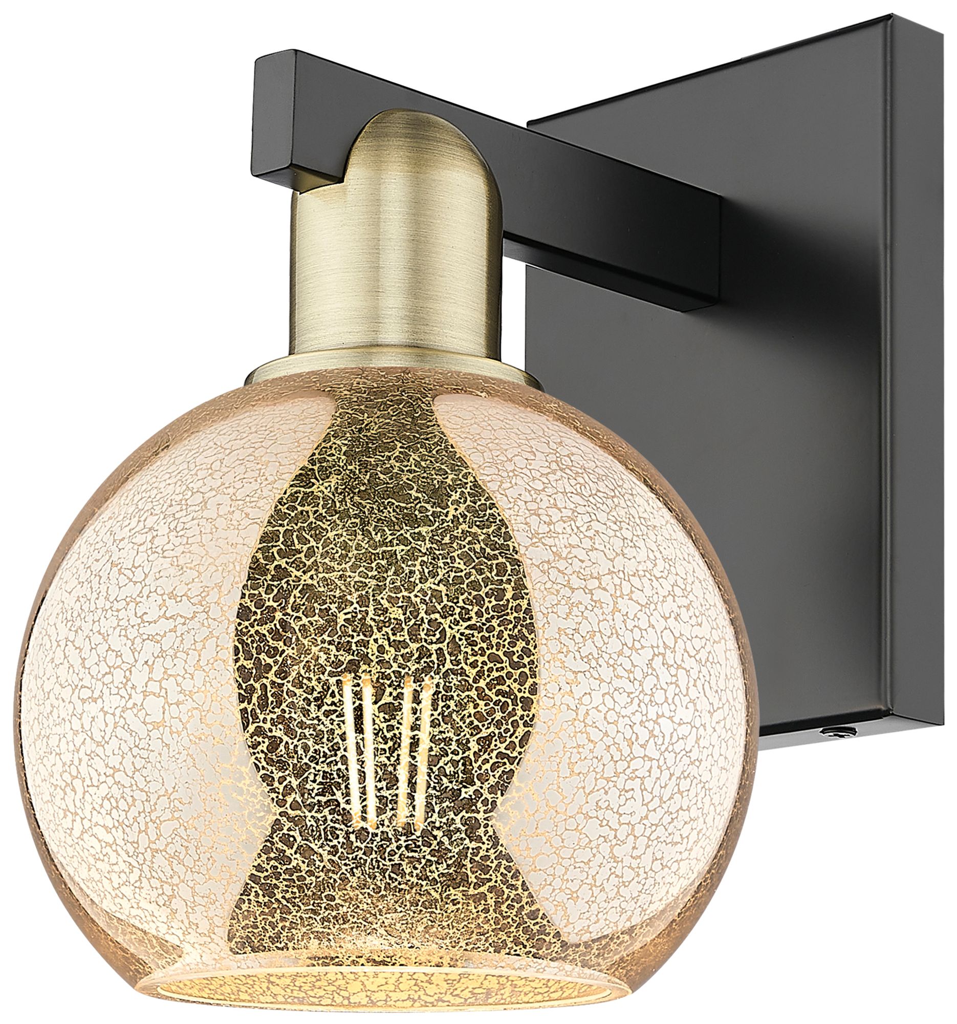 Arcadia Athens 10" High Black Antique Brass Sconce With Mercury Shade