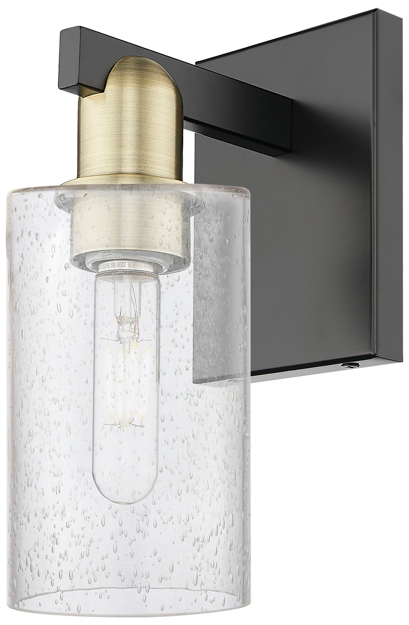 Arcadia Clymer 11" High Black Antique Brass Sconce With Seedy Shade