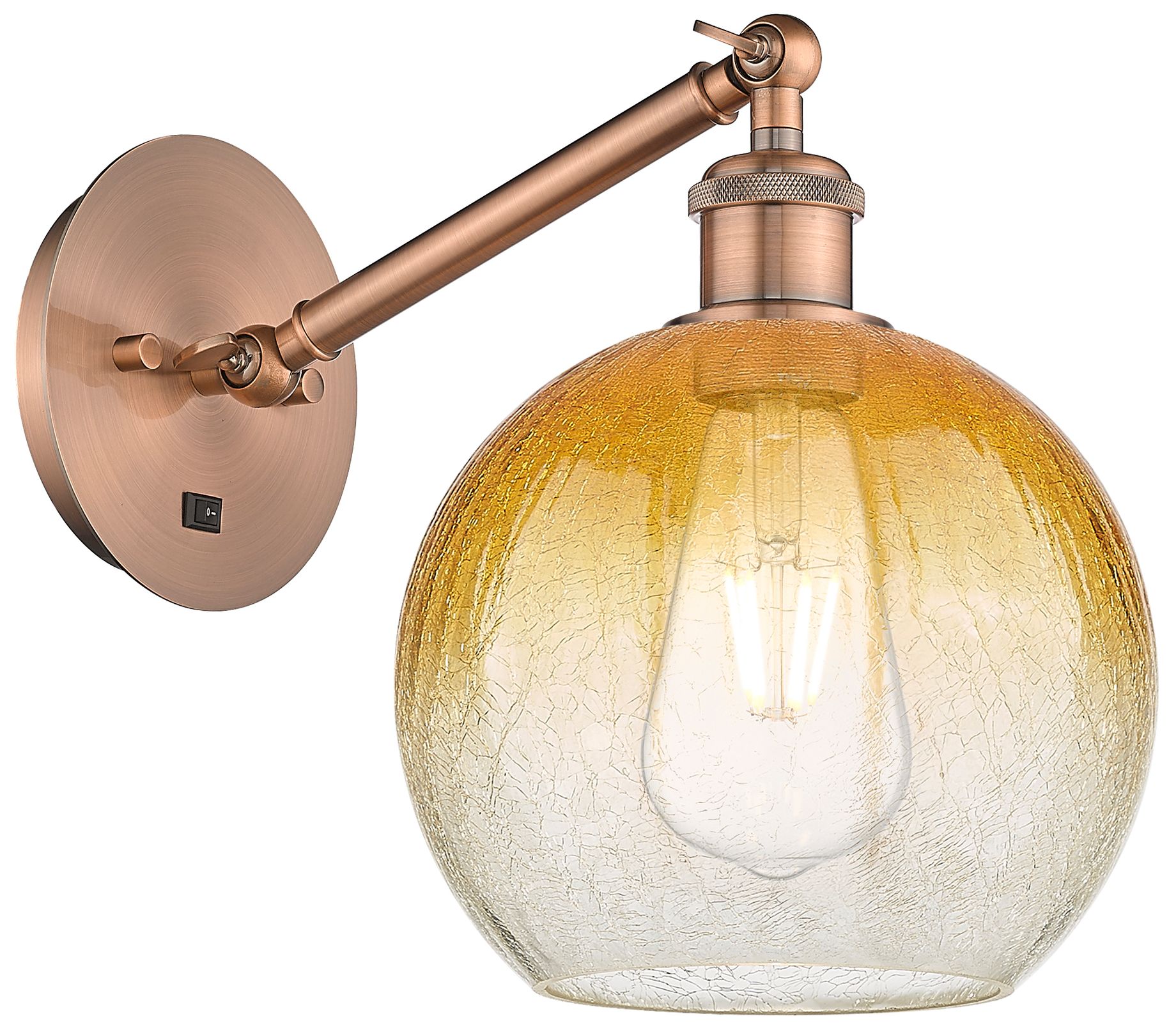 Ballston Brookhaven Globe 10"H Copper Swivel Sconce With Amber Shade