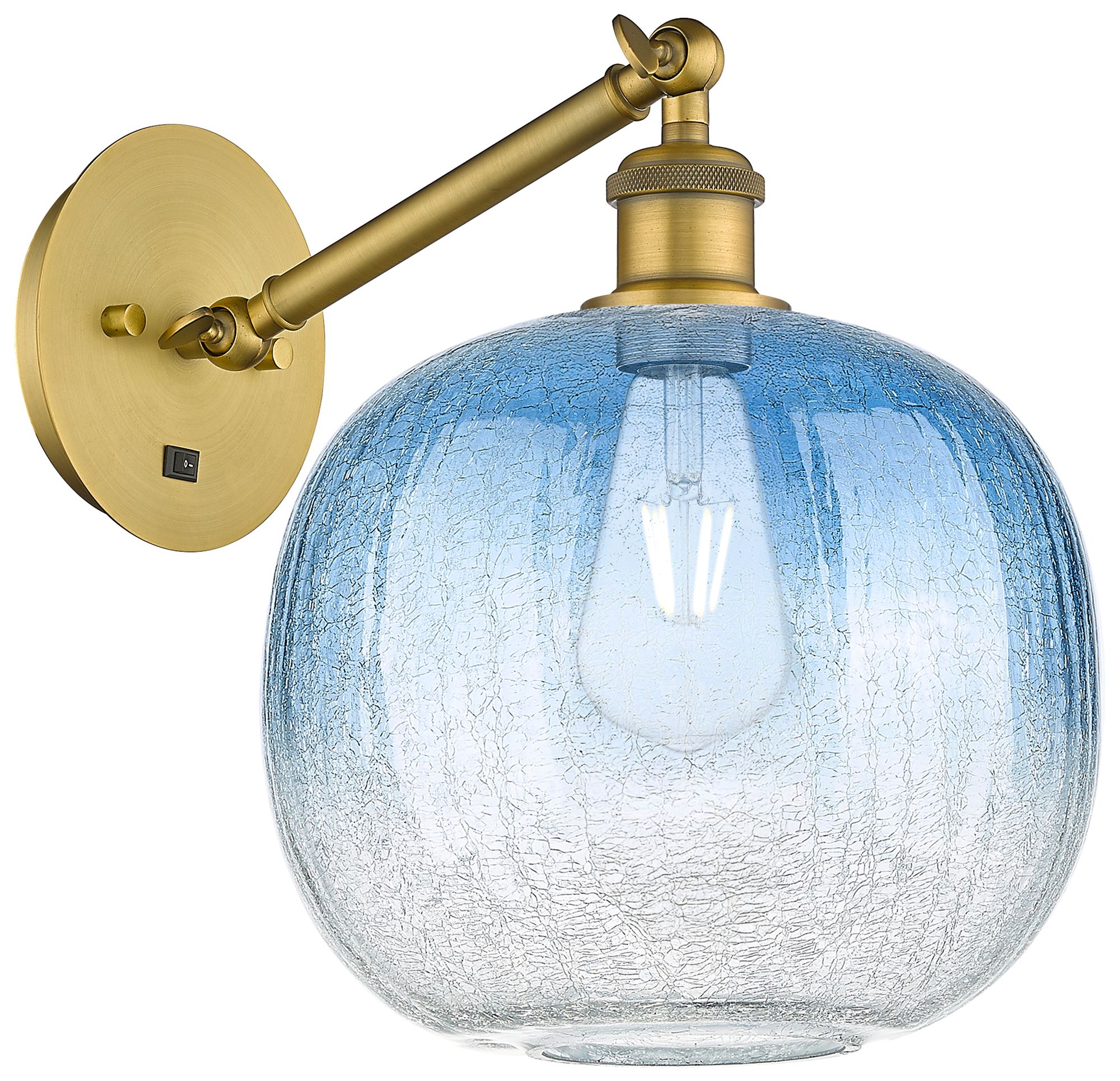 Ballston Brookhaven Sphere 12"H Brush Brass Swivel Sconce w/ Sapphire Shade