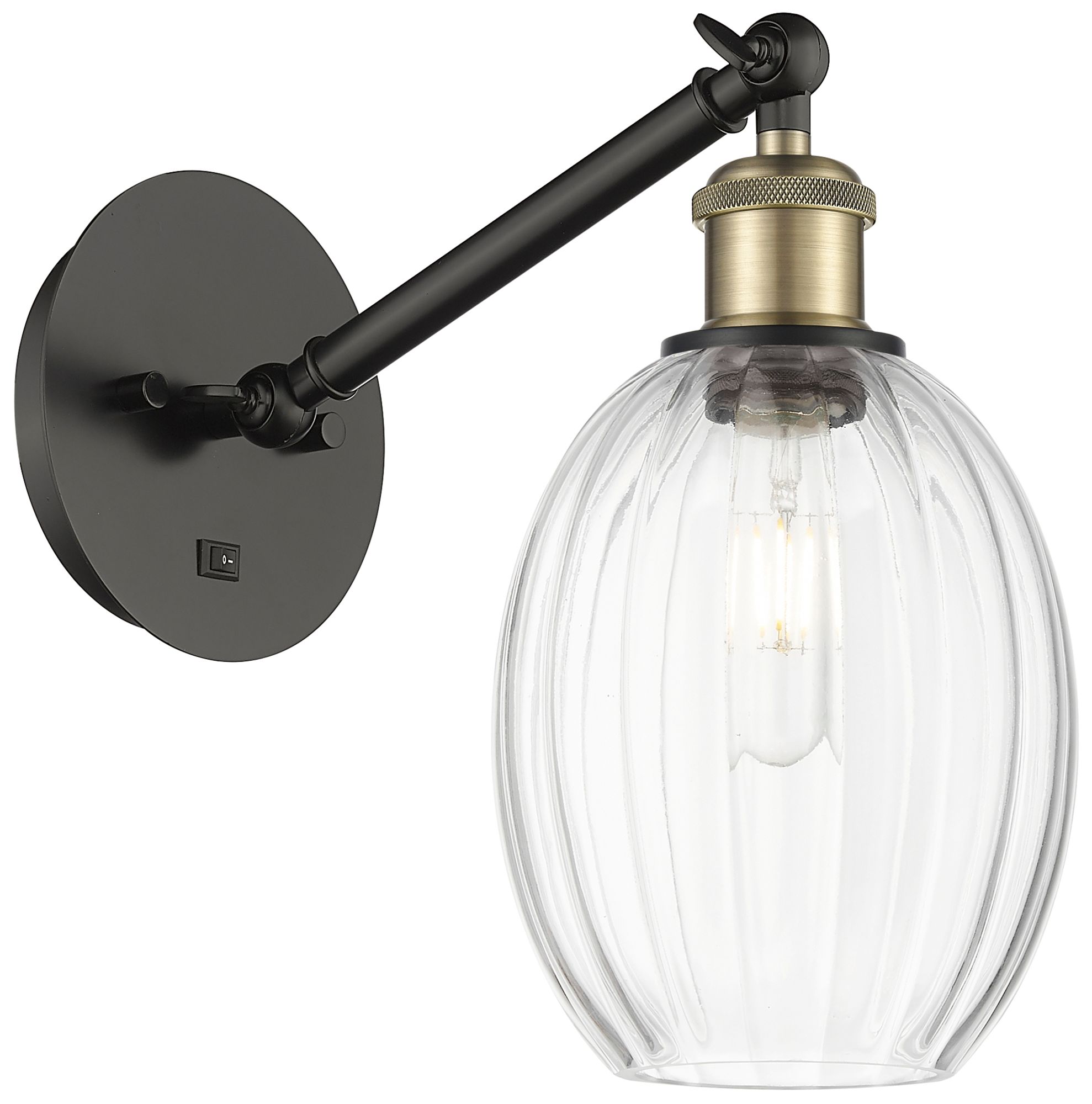 Ballston Preston 11"H Black Brass Swivel Sconce w/ Clear Bulb Shade