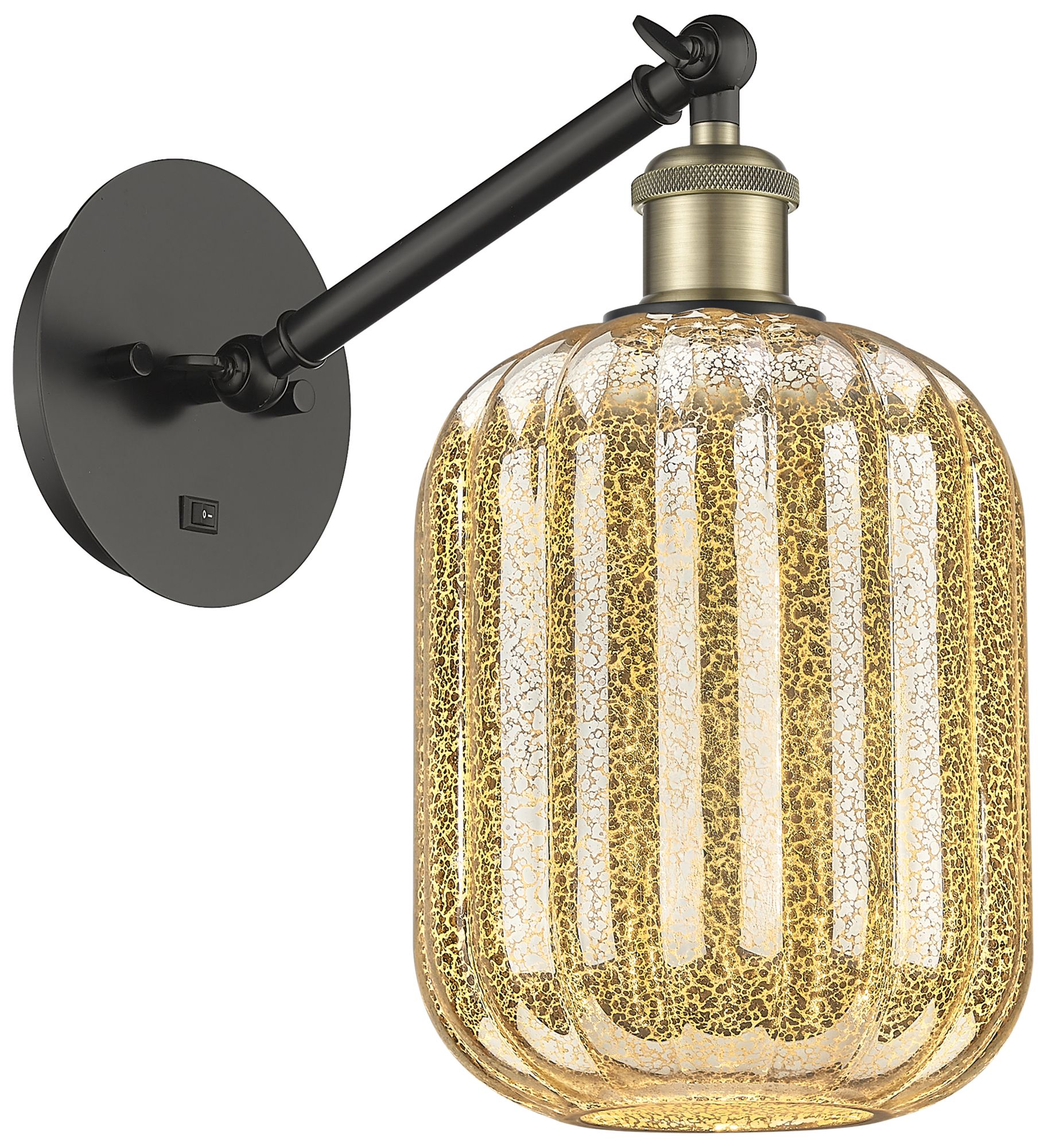 Edison Preston 14"H Black Antique Brass Sconce With Mercury Jar Shade