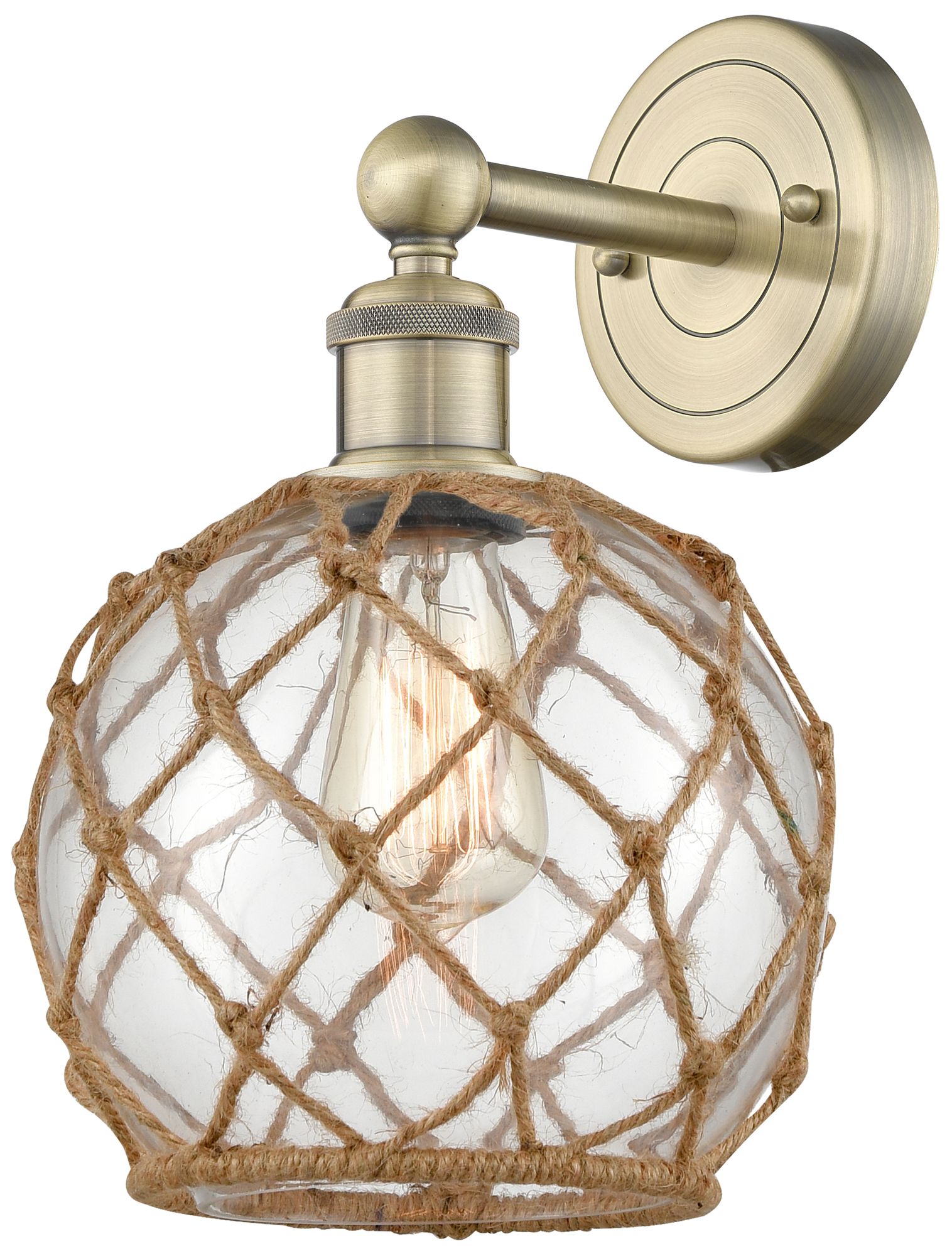 Edison Farmhouse Rope 12"H Brass Sconce w/ Clear Glass Brown Shade