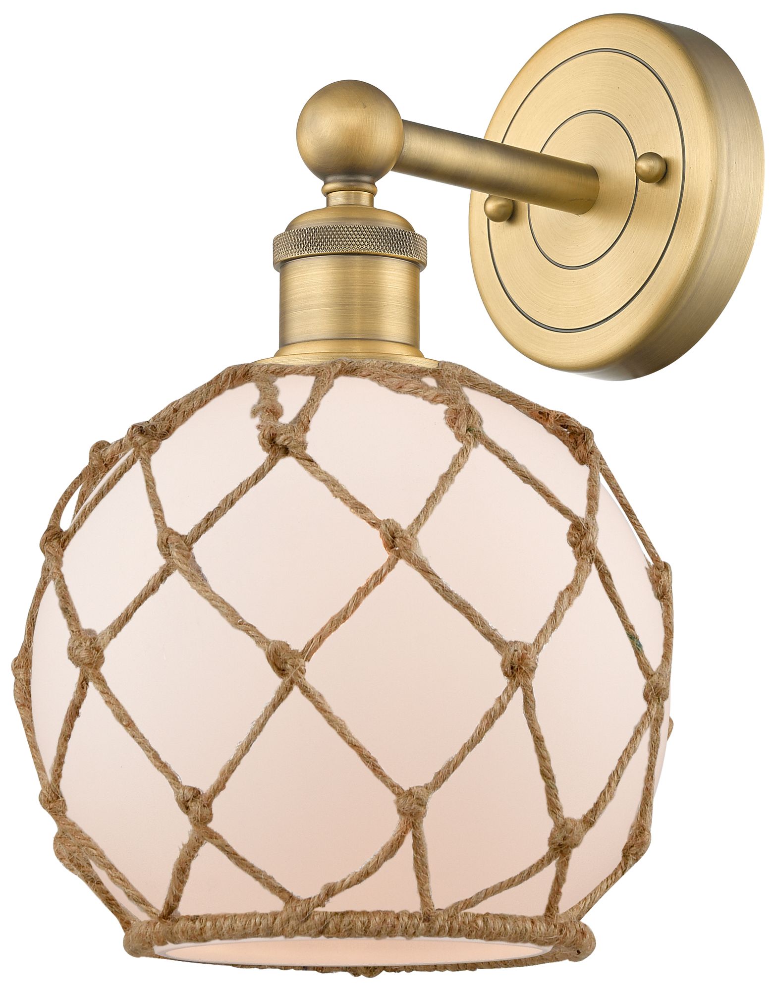 Edison Farmhouse Rope 12"H Brushed Brass Sconce w/ White Brown Shade