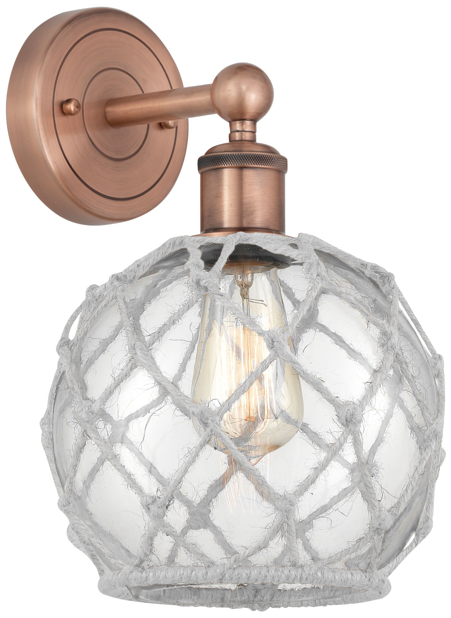 Edison Farmhouse Rope 12"H Copper Sconce w/ Clear Glass White Shade