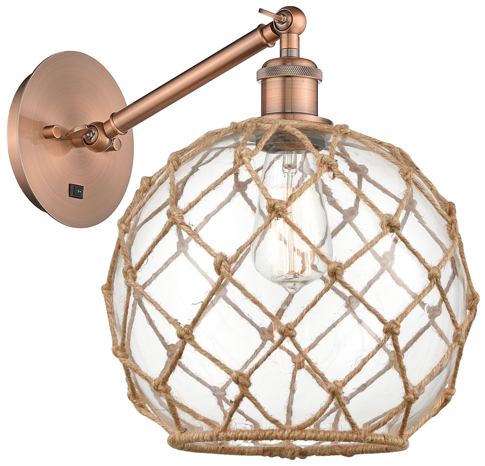 Farmhouse Rope 12"H Copper Adjustable Sconce w/ Glass & Brown Rope Shade