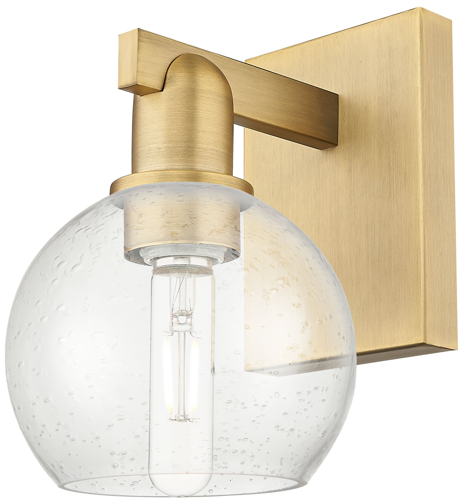 Arcadia Athens 10" High Brushed Brass Sconce With Seedy Shade