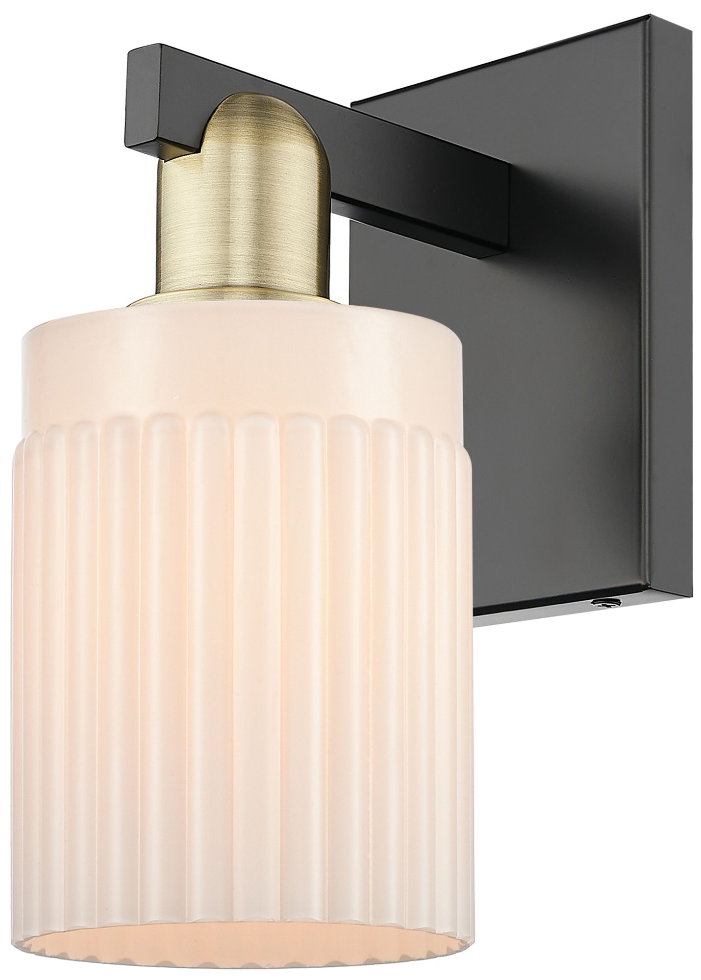 Edison Brookhaven Flute 17"H Black And Brass Sconce With Opal Shade
