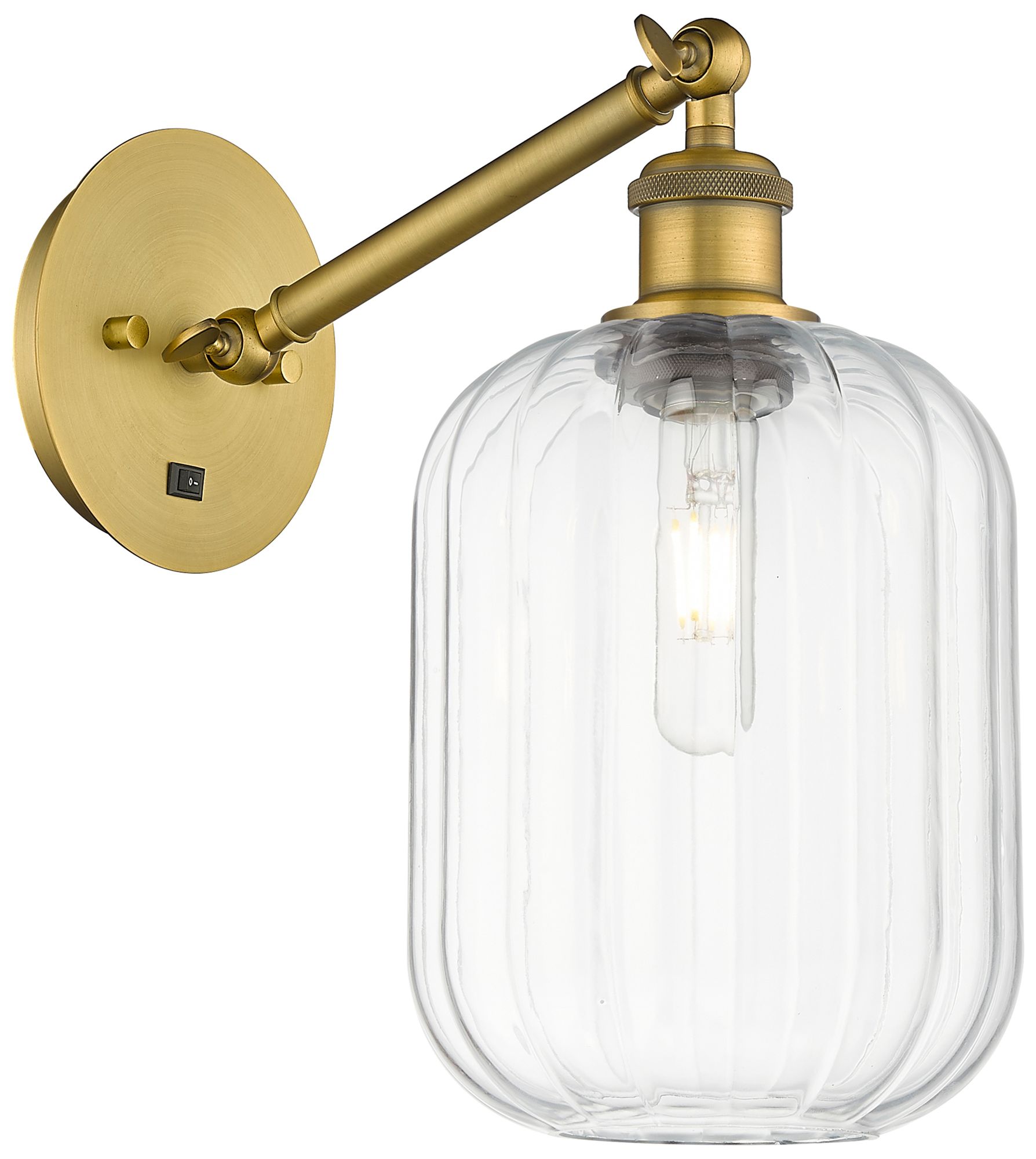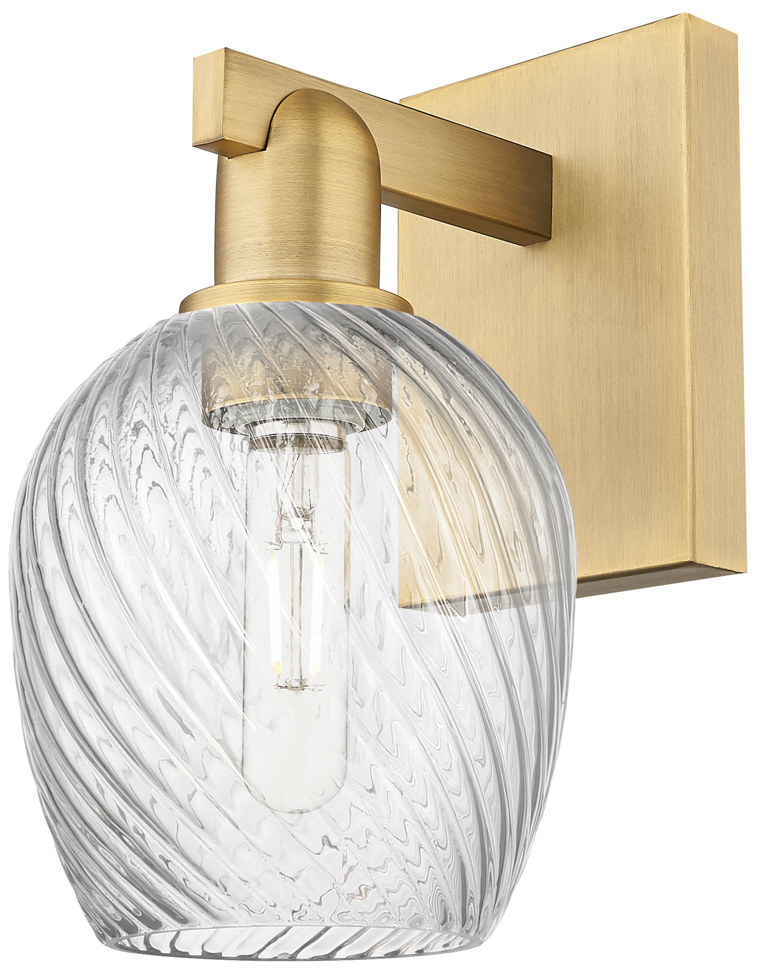 Arcadia Salina 11"H Brushed Brass Sconce w/ Clear Spiral Fluted Shade