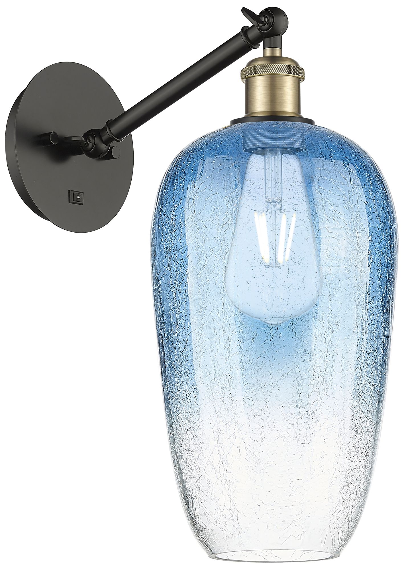Ballston Brookhaven Flute 15"H Black Brass Swivel Sconce w/ Sapphire Shade