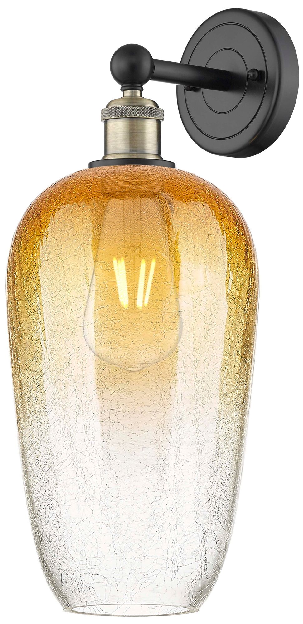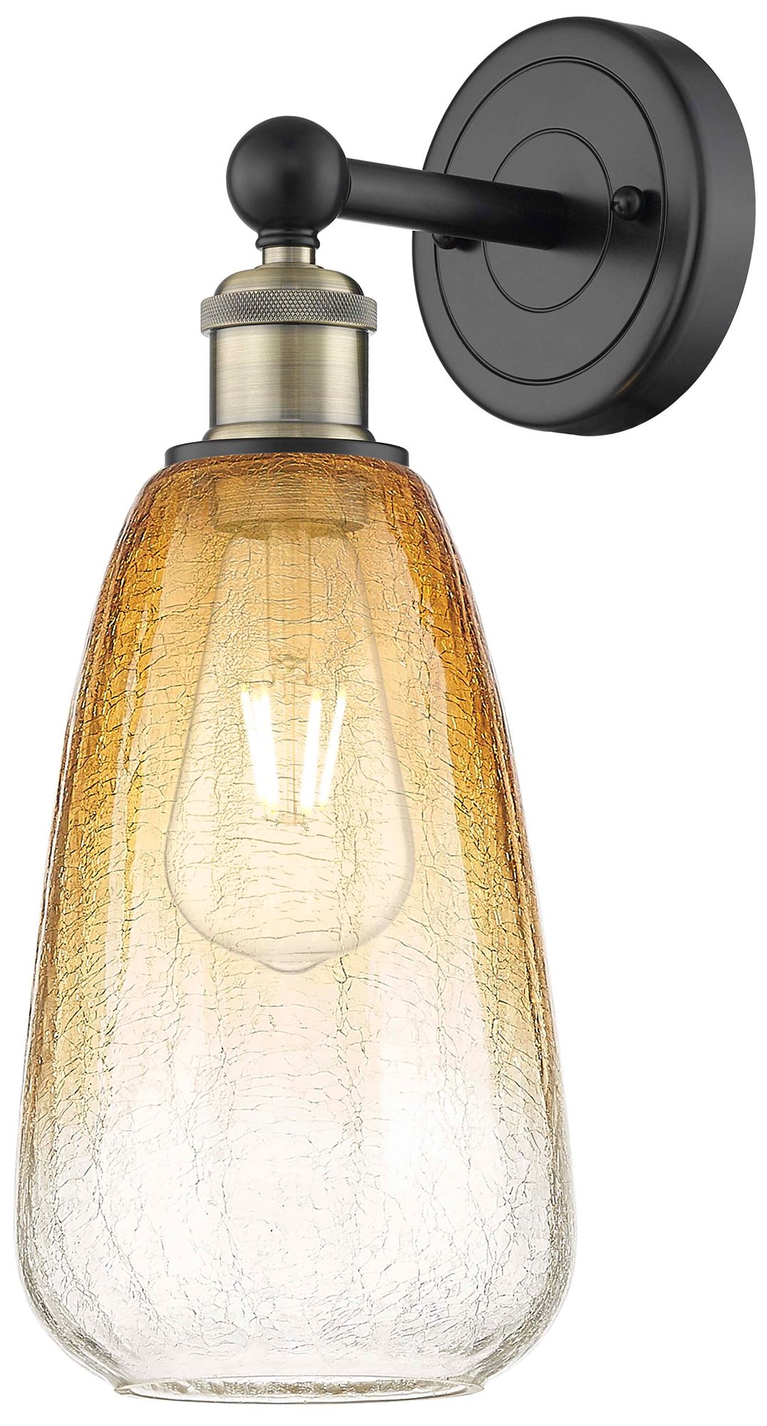Edison Brookhaven Almond 15"H Black And Brass Sconce With Amber Shade