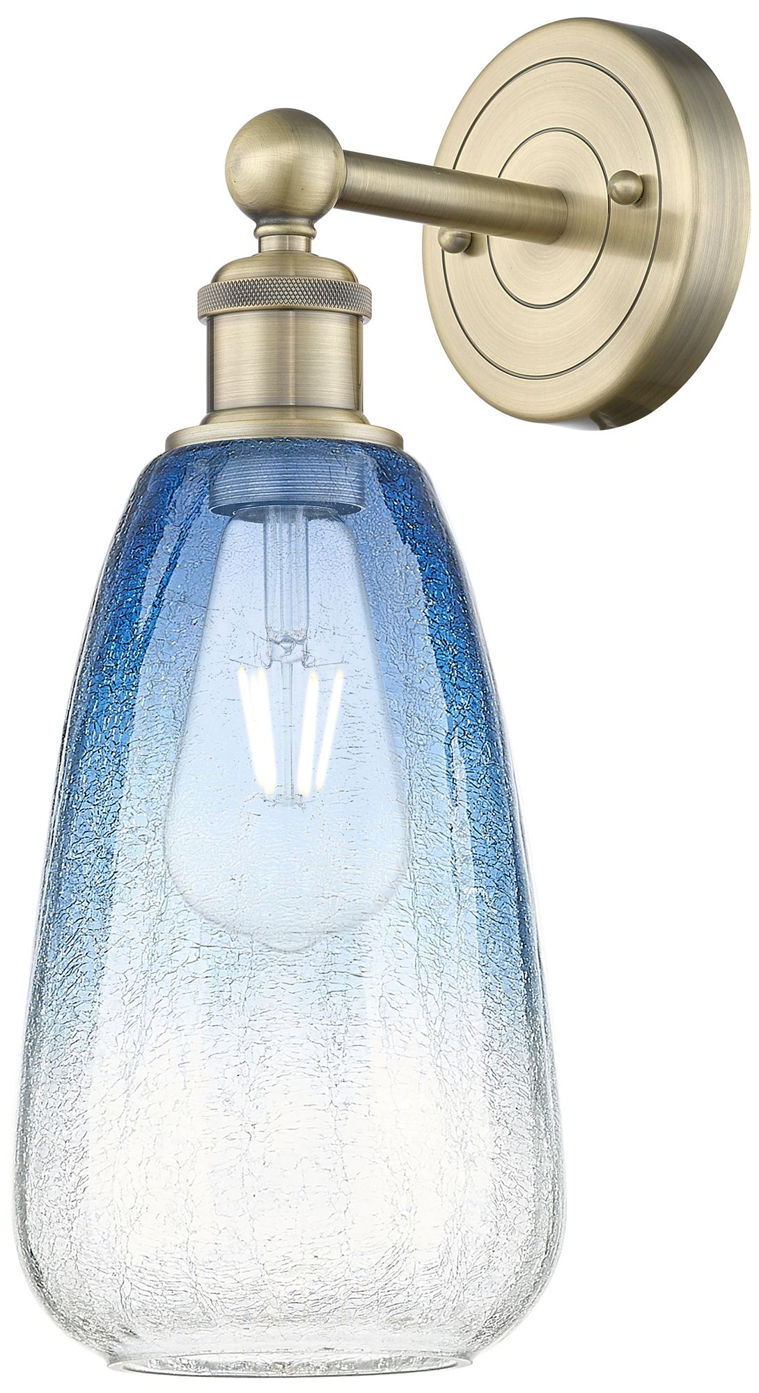 Edison Brookhaven Almond 15"H Brass Sconce With Sapphire Blue Shade