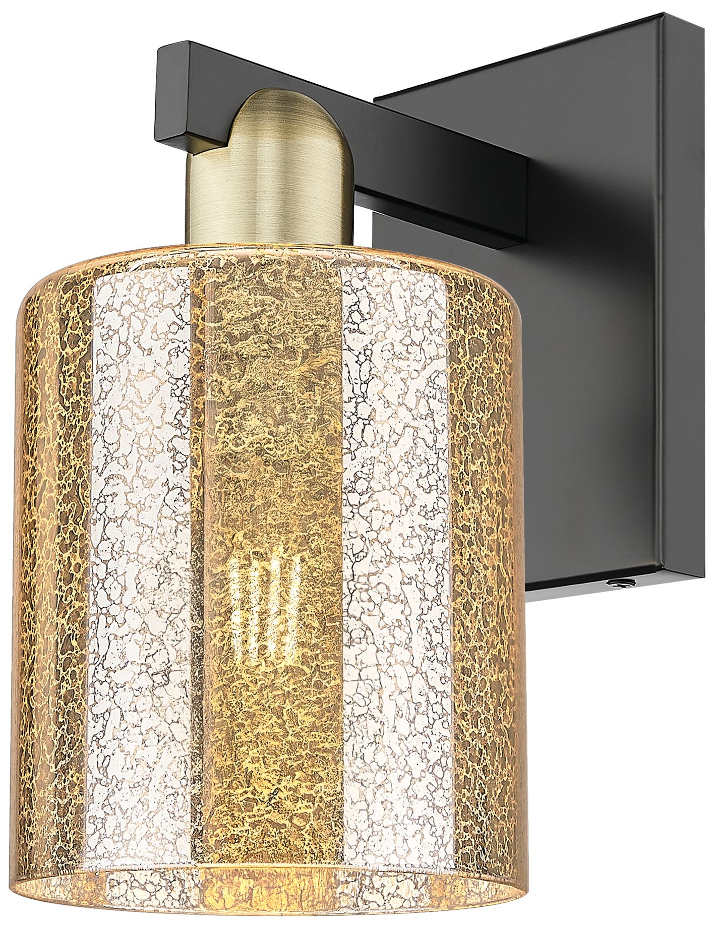 Arcadia Cobbleskill 11"H Black Antique Brass Sconce With Mercury Shade