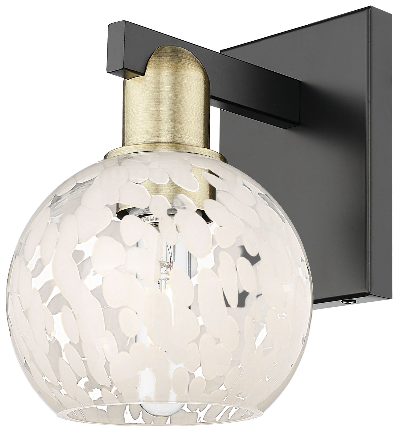 Arcadia White Mouchette 10" High Black Antique Brass Sconce With